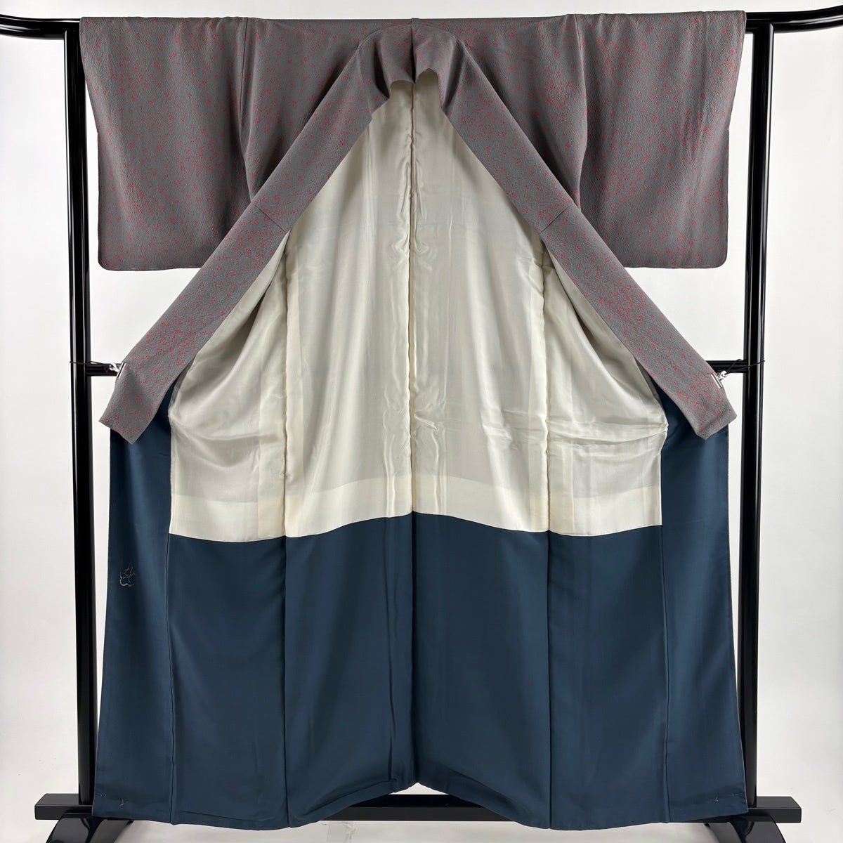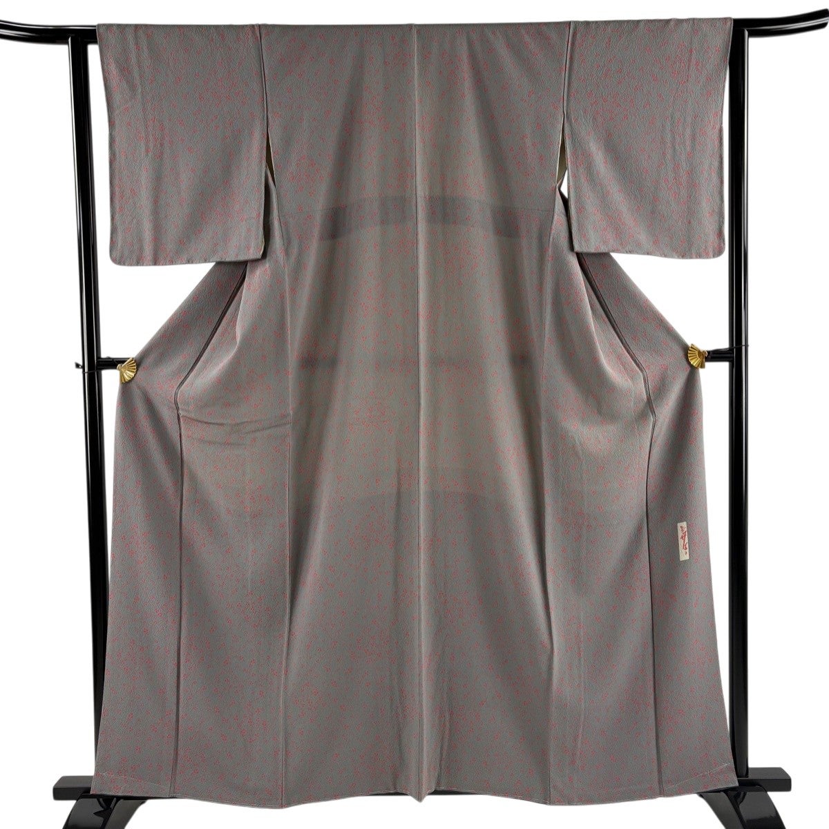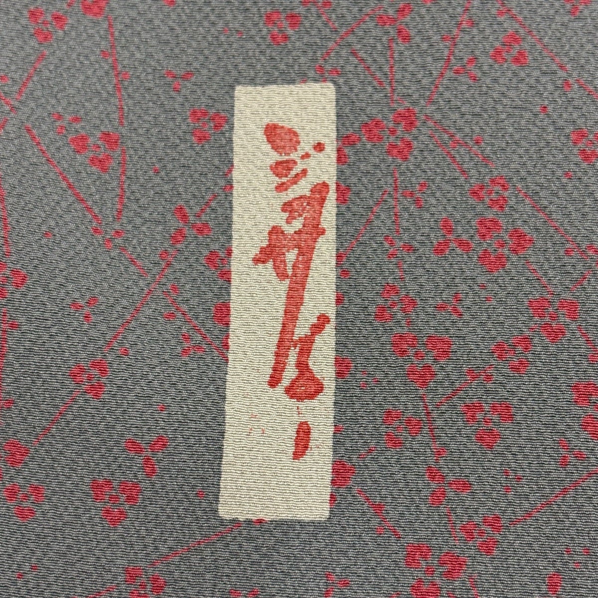 小紋 身丈160.5cm 裄丈63.5cm S 袷 辻村ジュサブロー 落款あり 枝花 灰色 正絹 名品