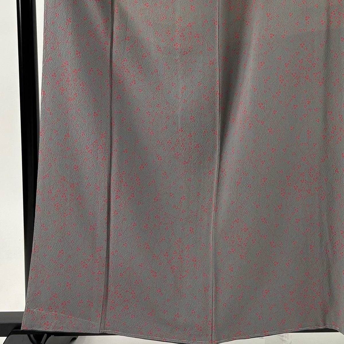 小紋 身丈152.5cm 裄丈65.5cm M 袷 柿本市郎 落款あり 花 地紋 灰緑 正絹 秀品 一つ紋
