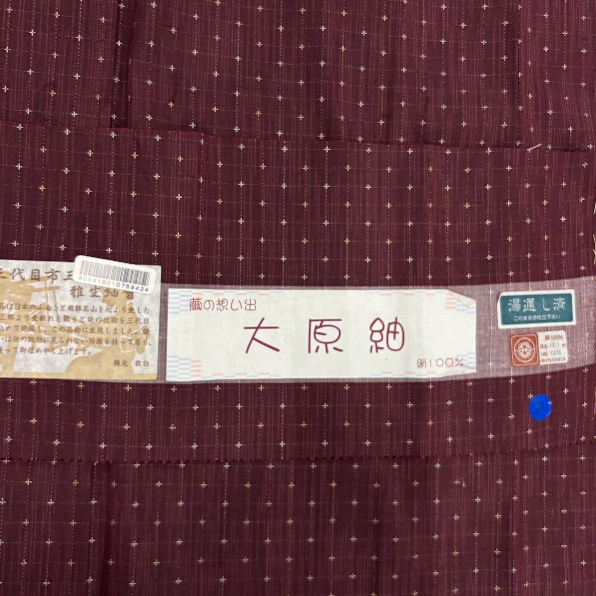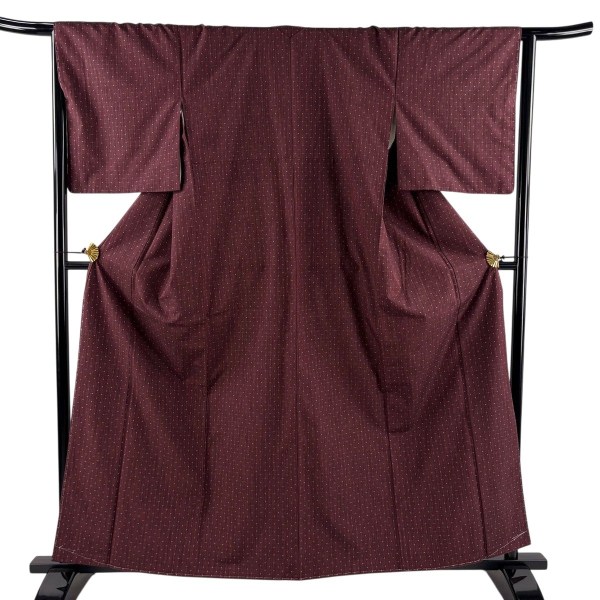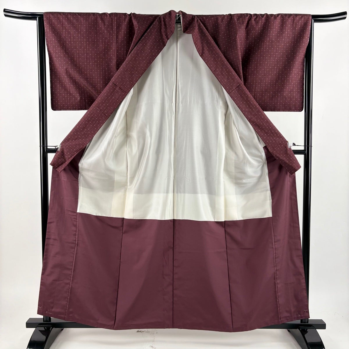 【美品】 小紋 身丈166.5cm 裄丈66.5cm M 袷 名古屋帯セット 梅 斜縞 金彩 薄小豆 正絹 秀品