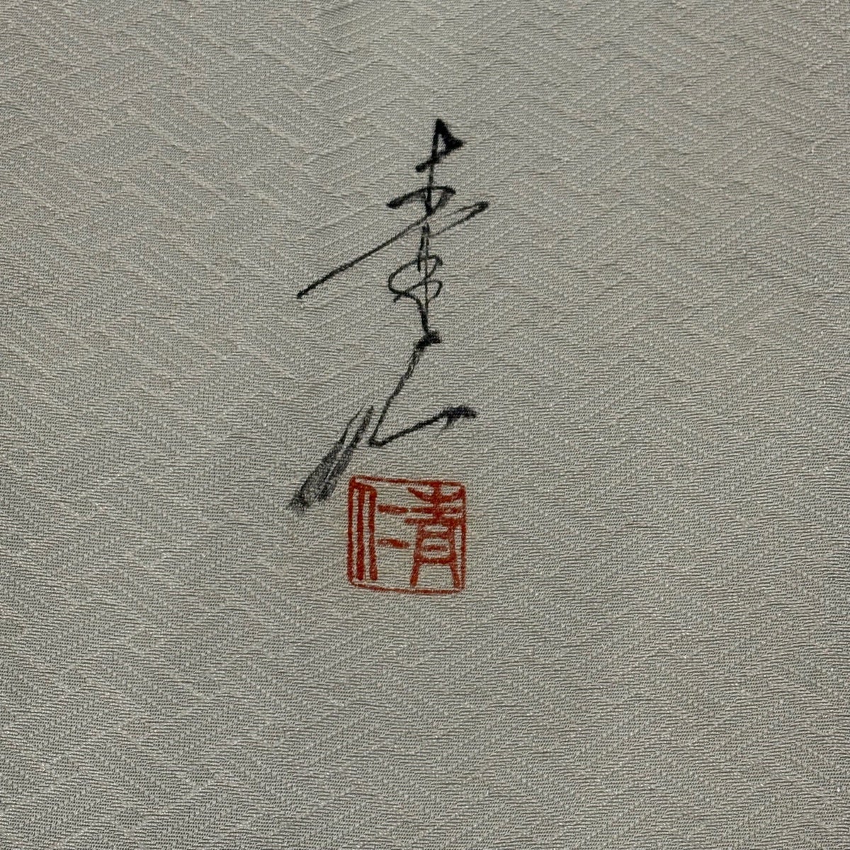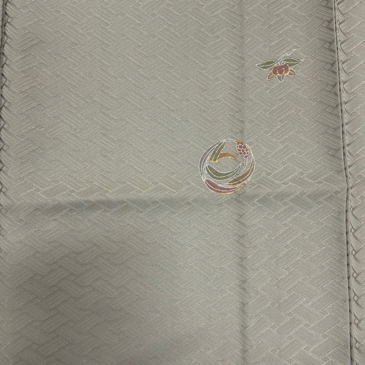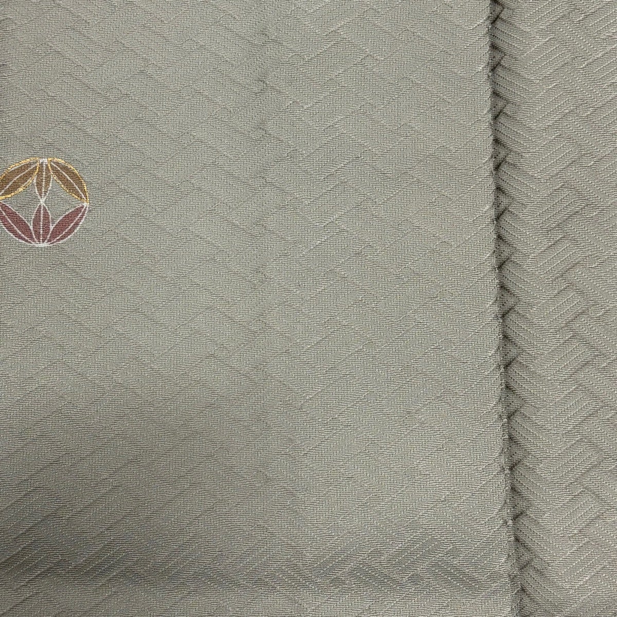 【美品】 小紋 身丈165cm 裄丈65cm M 袷 山岡古都 落款あり 草花 菱 紋意匠 灰色 正絹 逸品