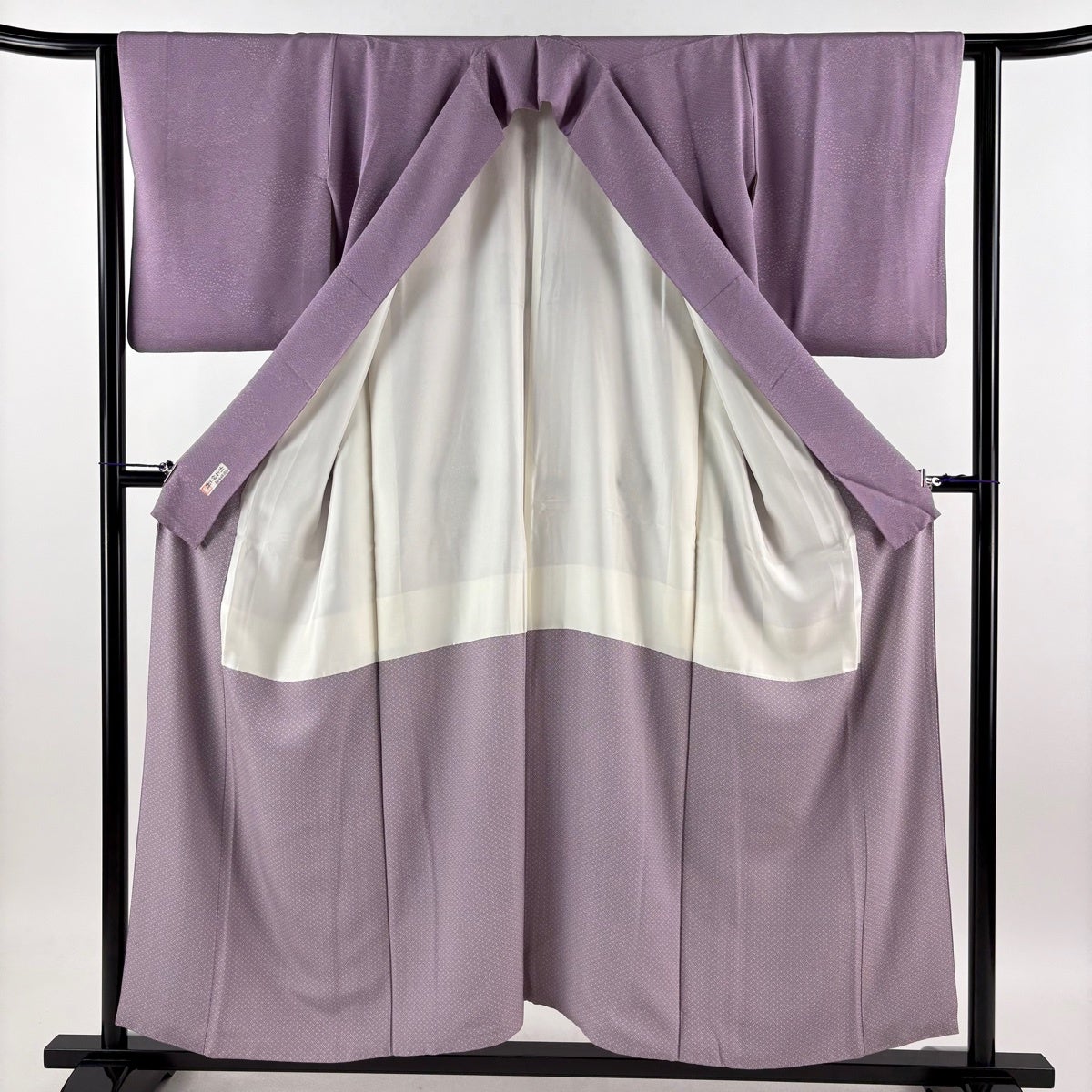 江戸小紋 身丈164cm 裄丈67.5cm L 袷 落款あり 幾何学 灰紫 正絹 秀品 一つ紋