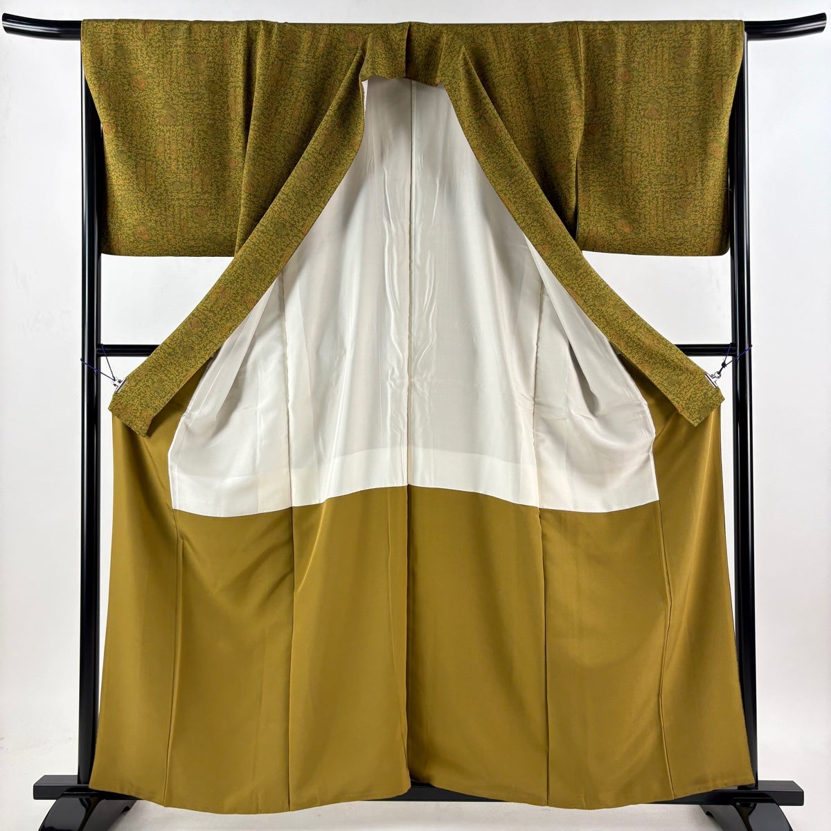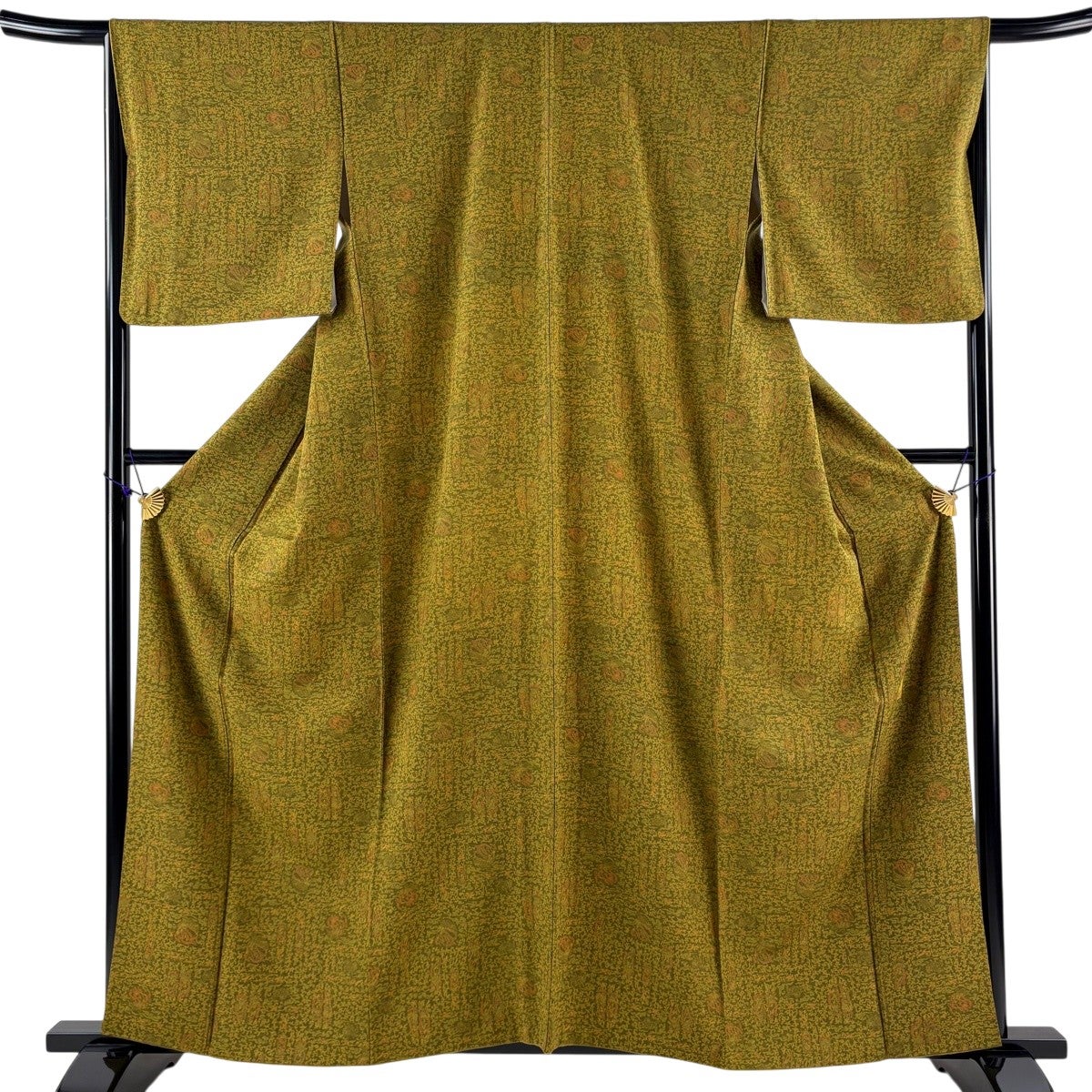 【美品】 江戸小紋 身丈151cm 裄丈63.5cm S 袷 人間国宝 中村勇二郎 落款あり 献上古代菊 草木染 鶯色 正絹 逸品