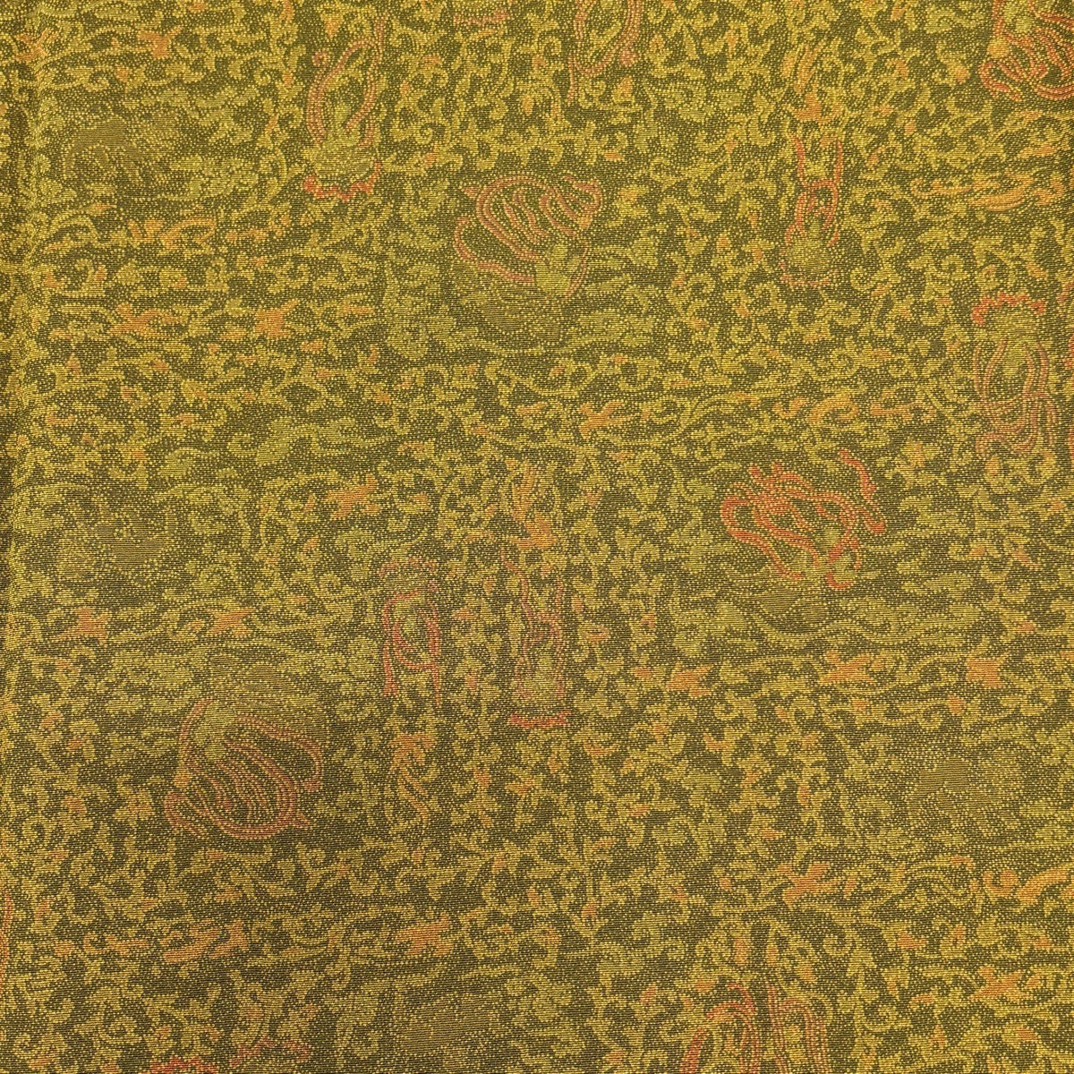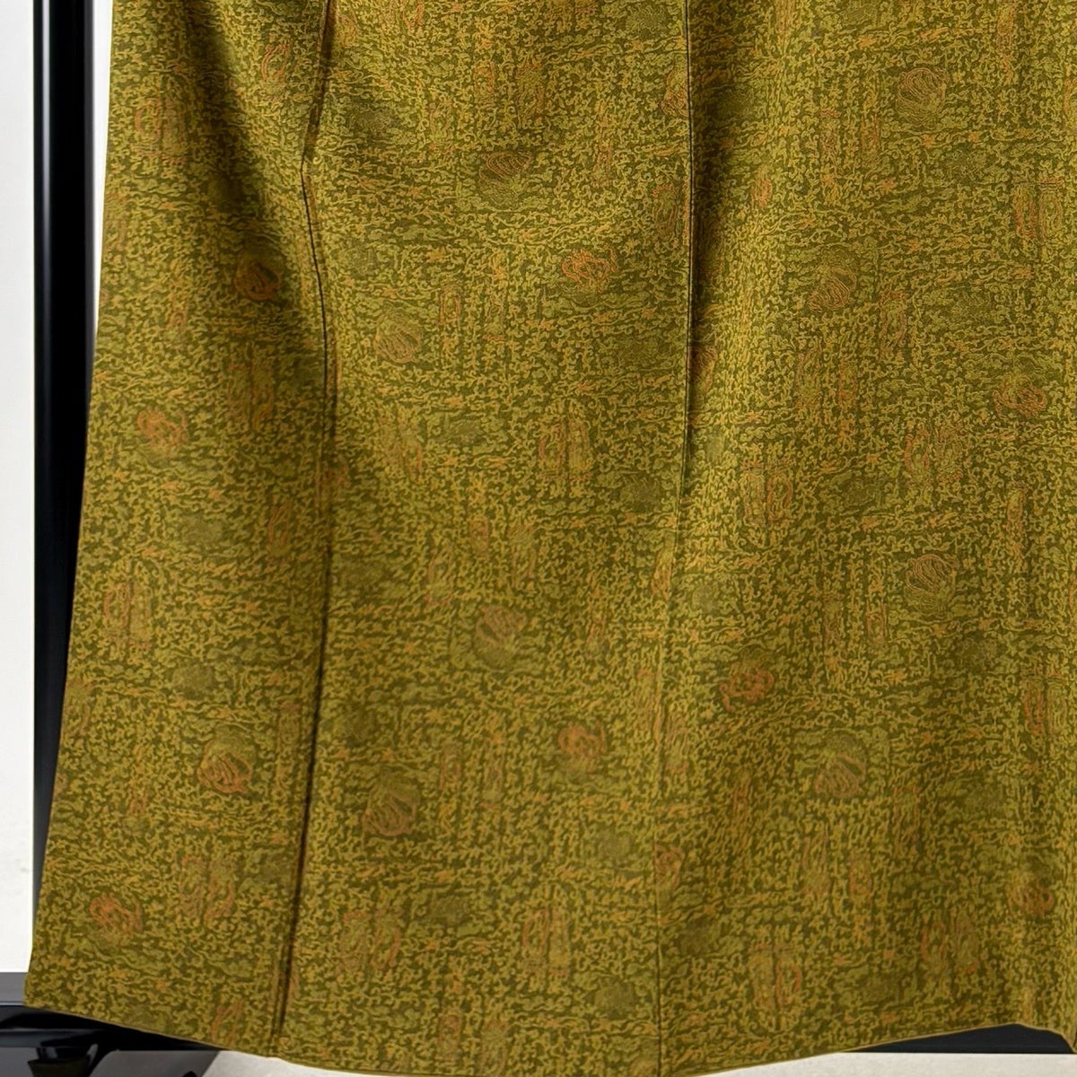 江戸小紋 身丈157.5cm 裄丈63cm S 袷 人間国宝 中村勇二郎 落款あり 獅子天女金剛力士像 茶緑色 正絹 逸品