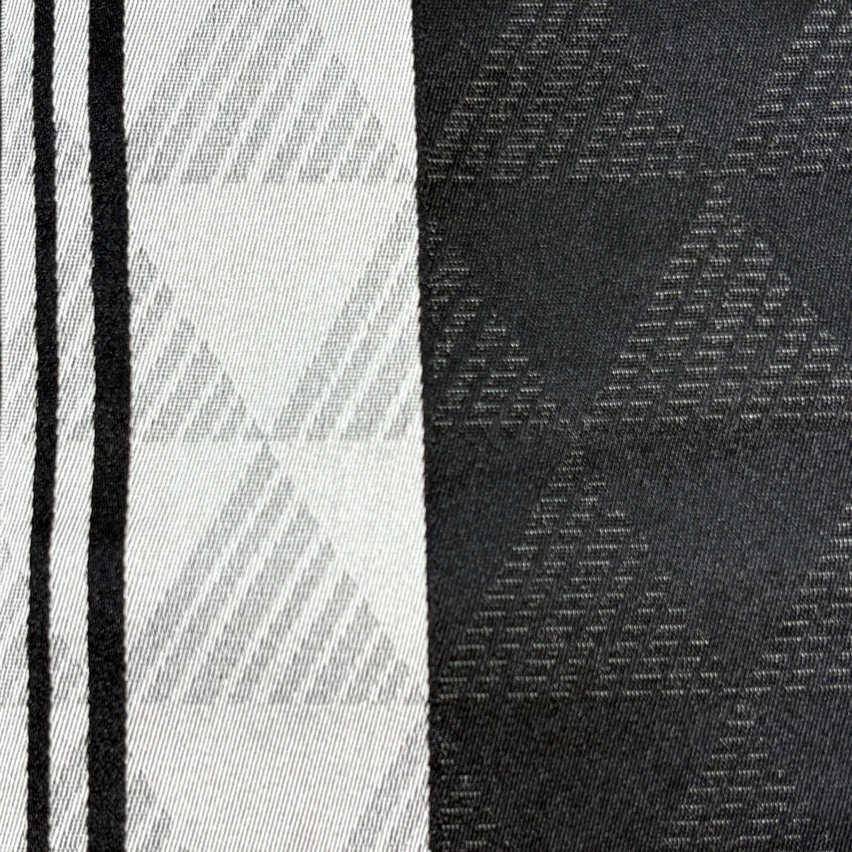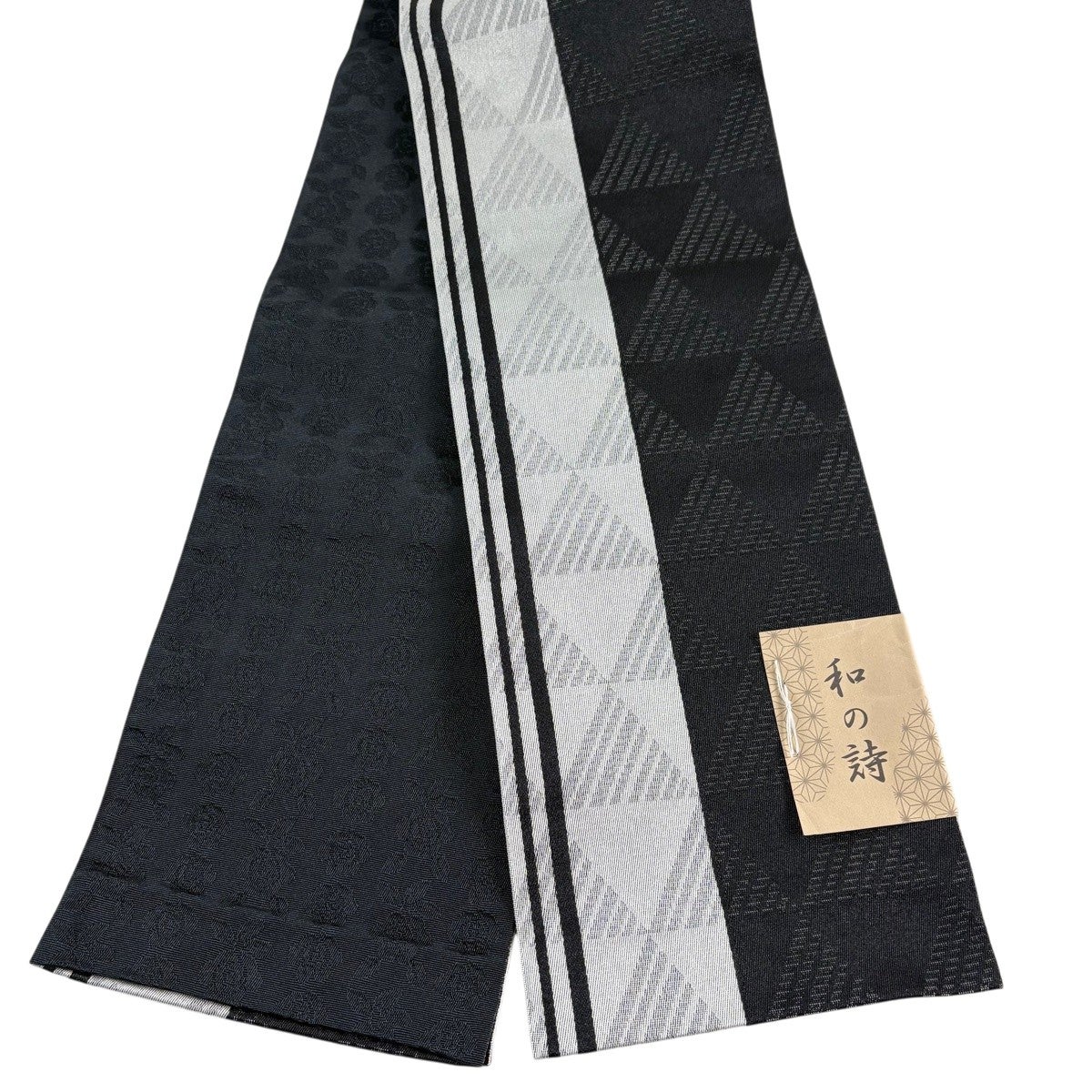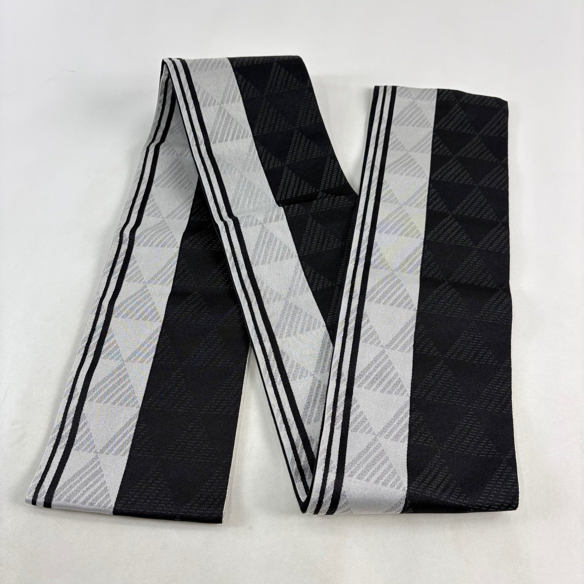 【美品】半幅帯 優品 鱗 縞 黒灰 化繊