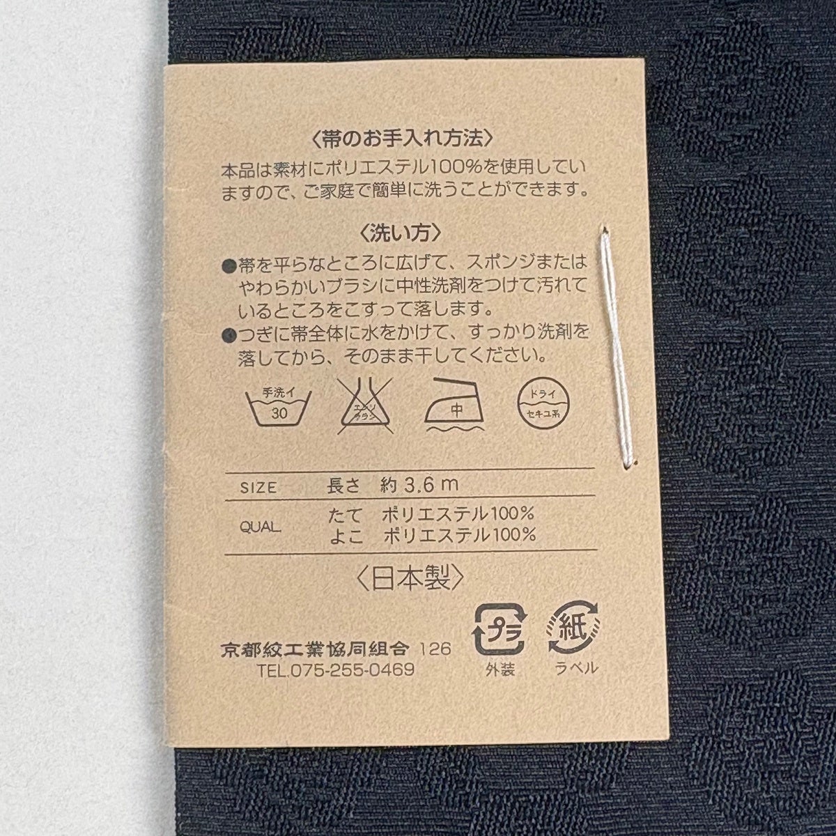 半幅帯 優品 薔薇 よろけ縞 箔 墨色 化繊