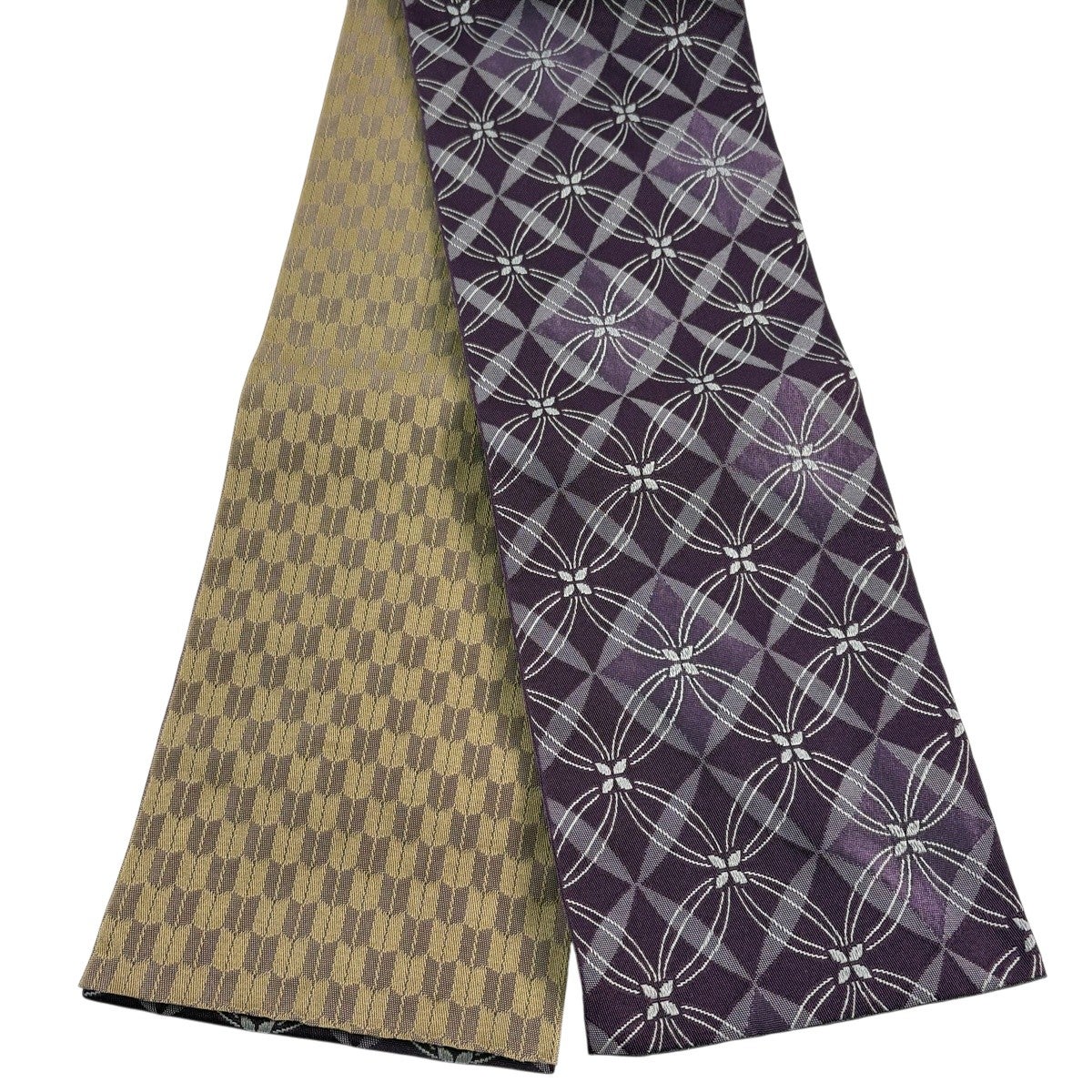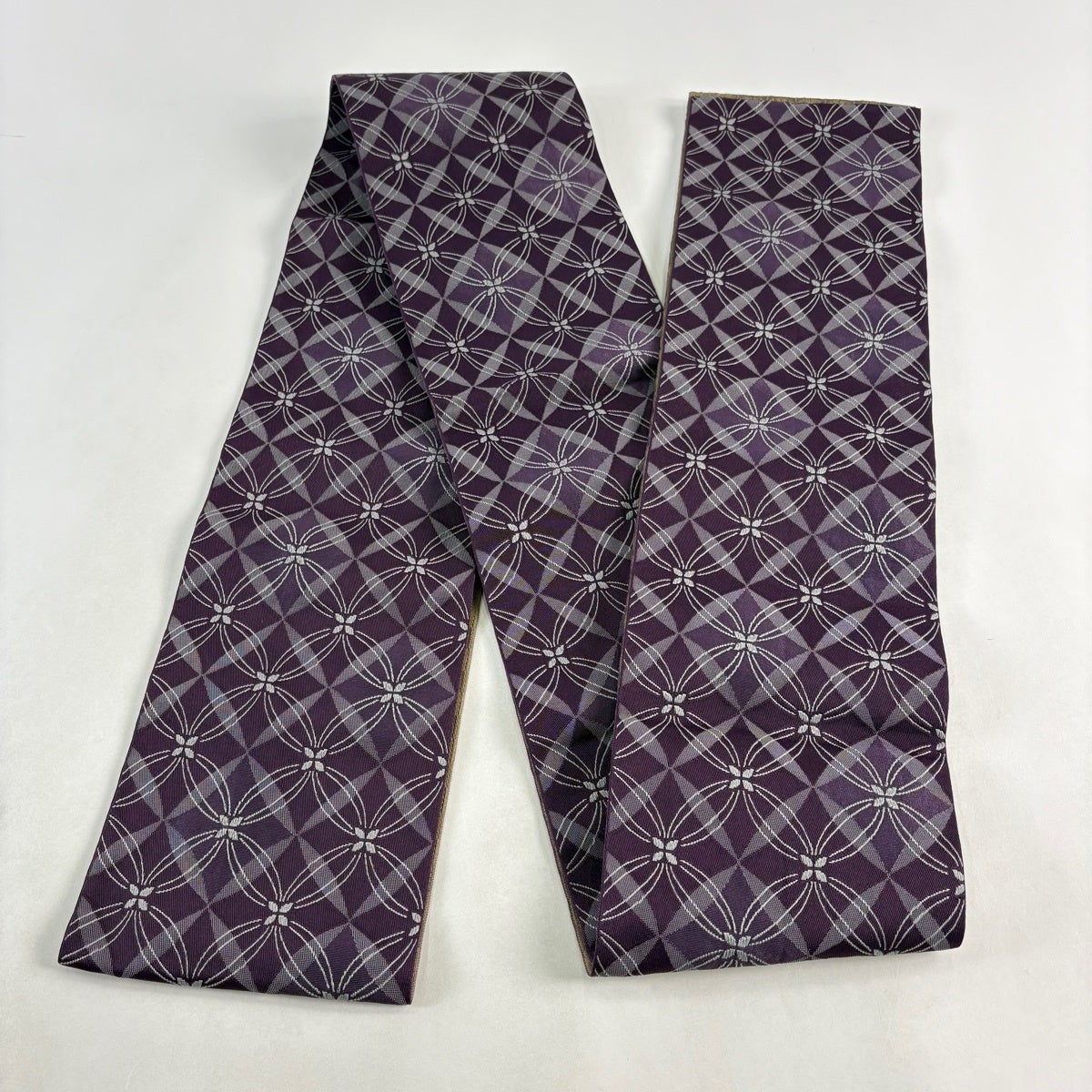 【美品】半幅帯 優品 七宝繋ぎ 花 濃紫 化繊