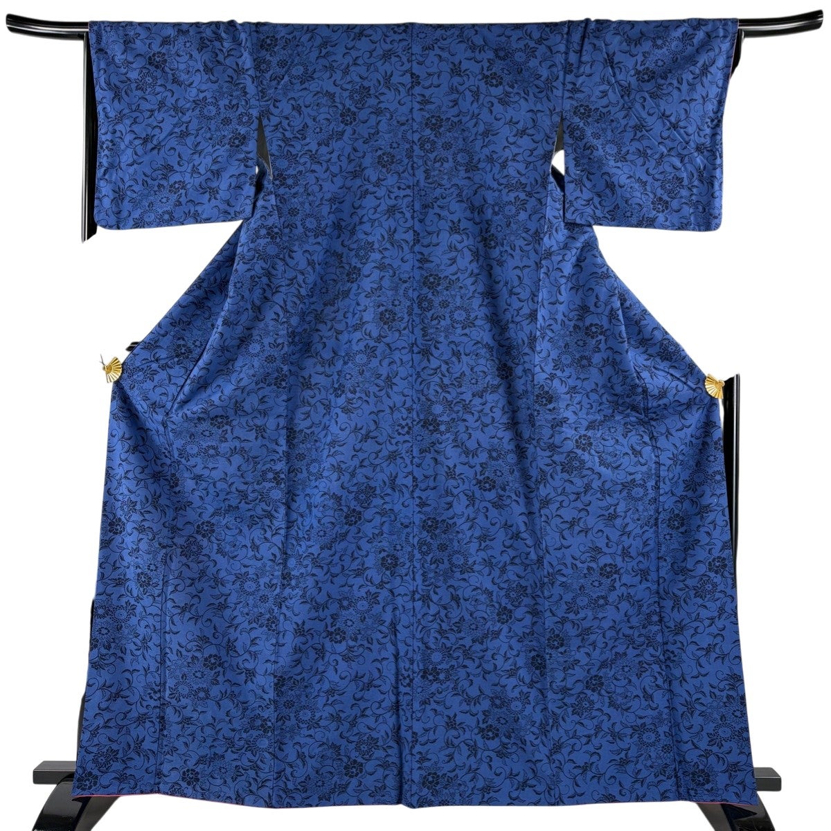 小紋 身丈155.5cm 裄丈64cm M 袷 菊唐草 藍色 正絹 秀品