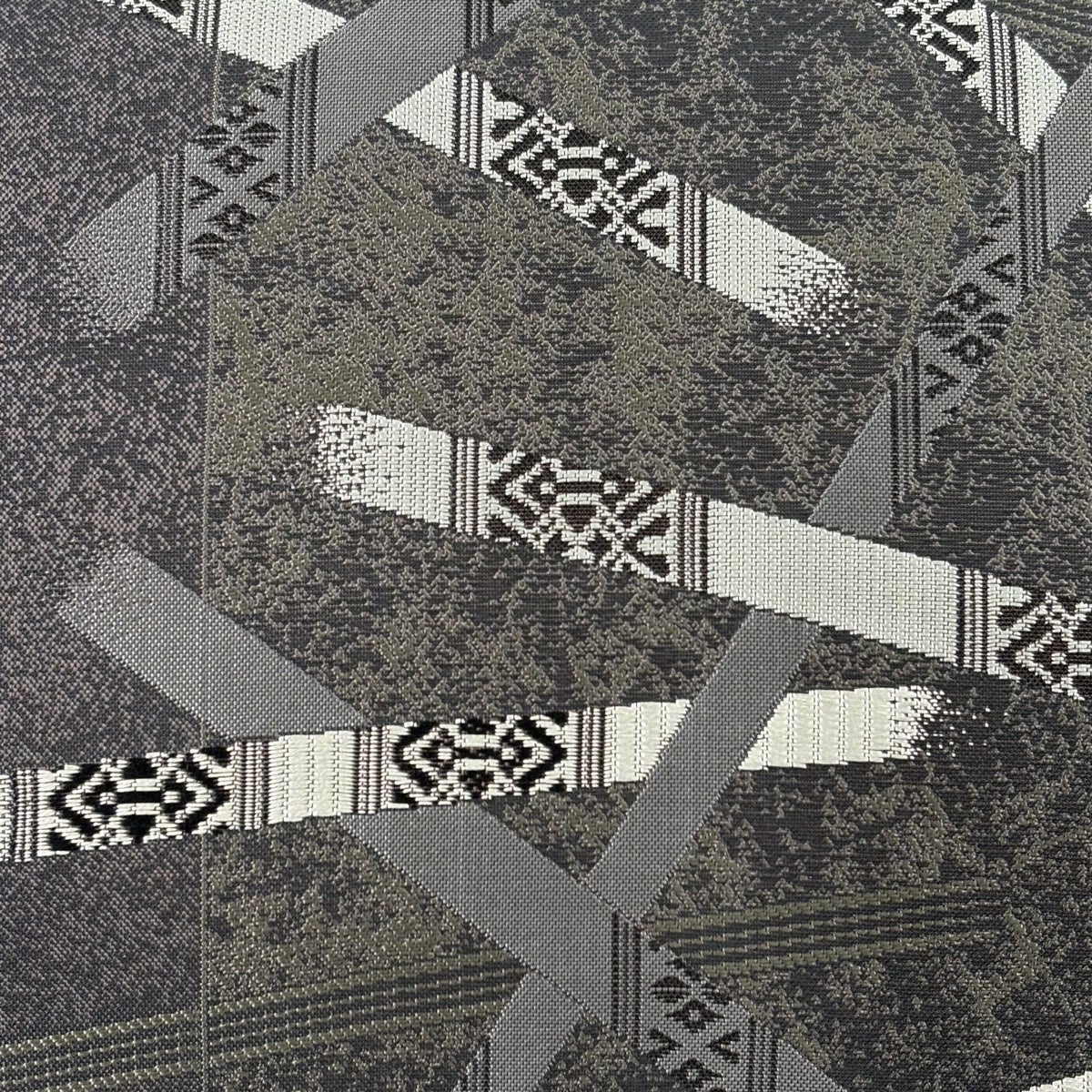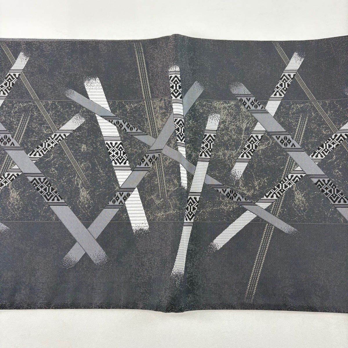 袋帯 秀品 夏帯 幾何学 青灰色 お太鼓柄 正絹