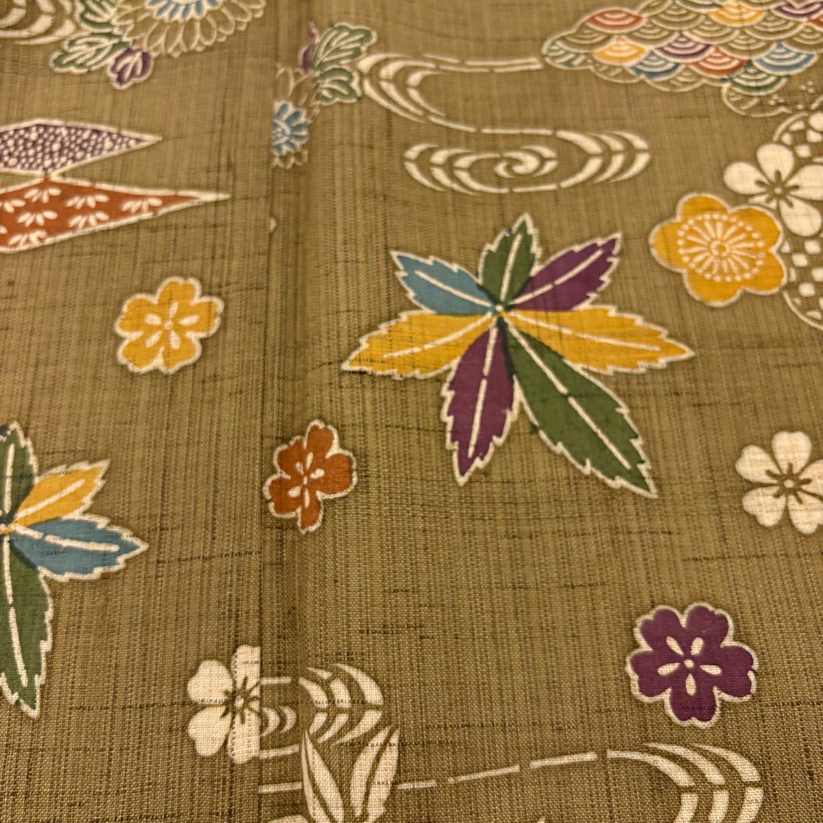 小紋 身丈159cm 裄丈66.5cm M 袷 草花 ぼかし 茶色 正絹 秀品
