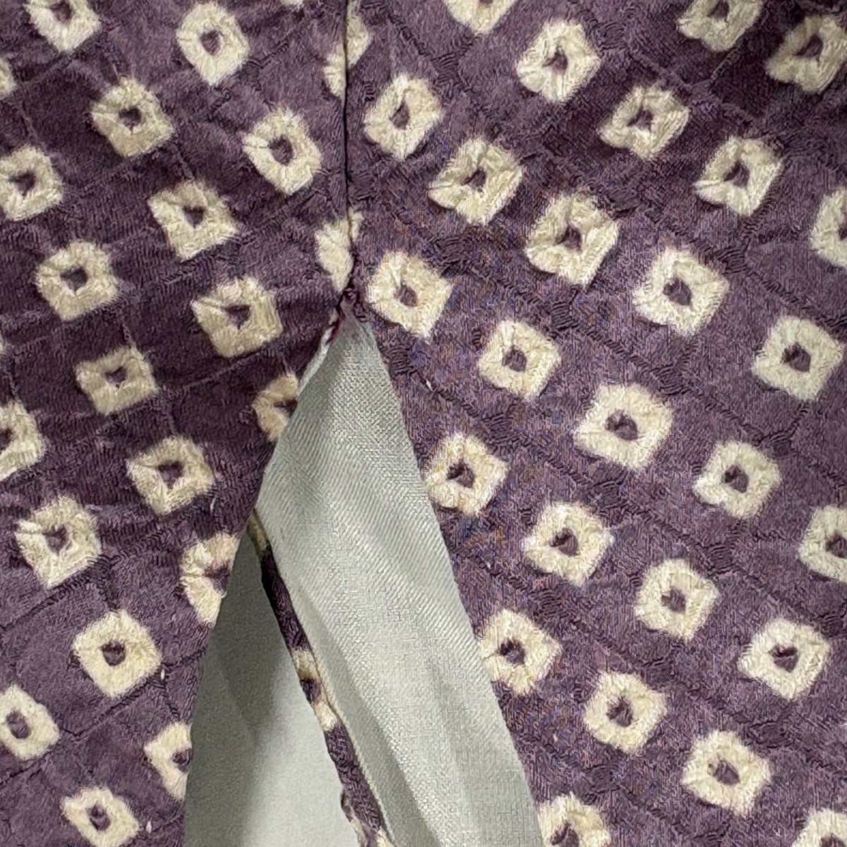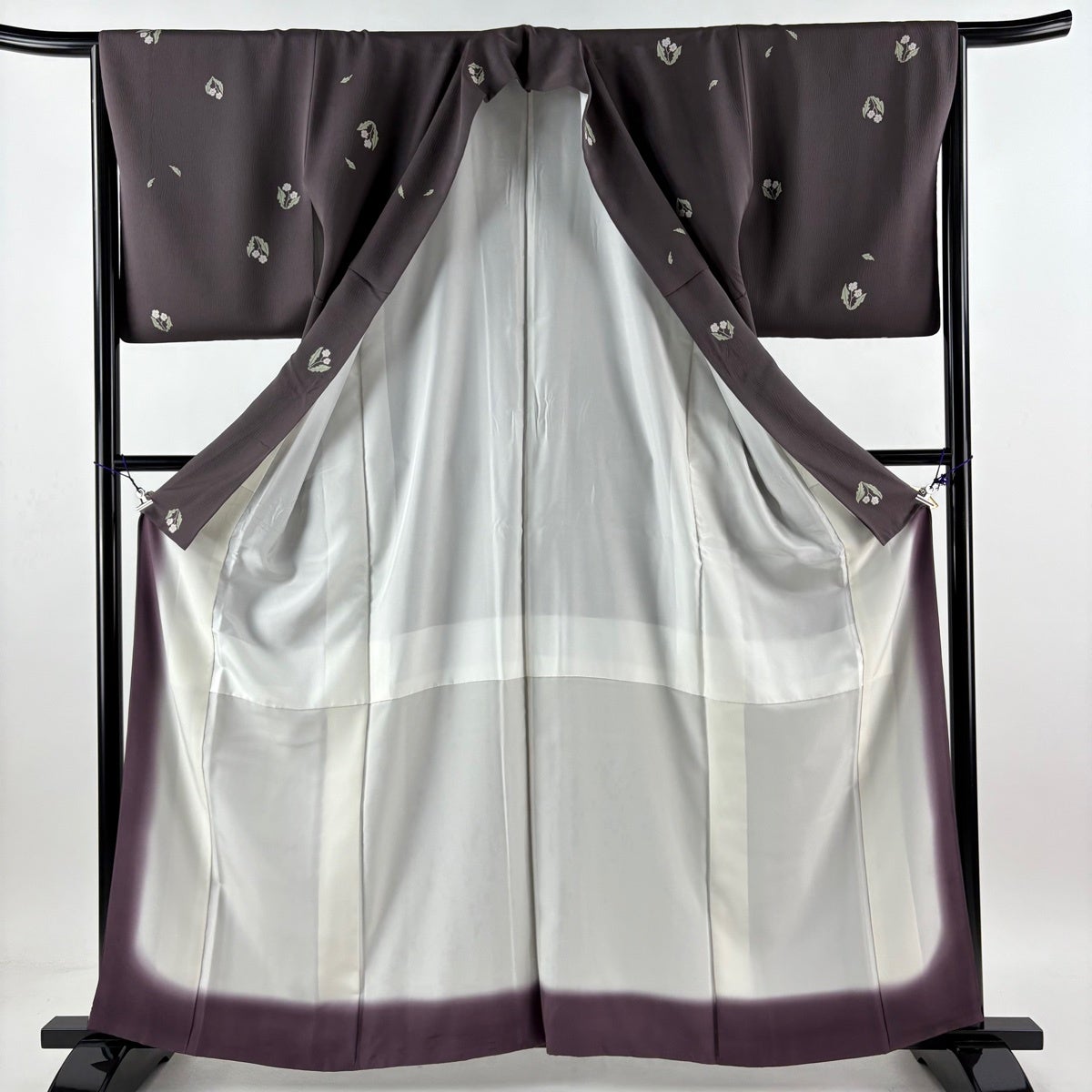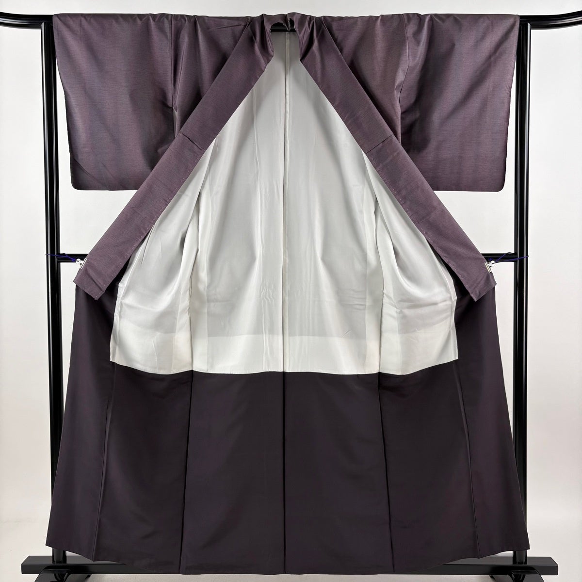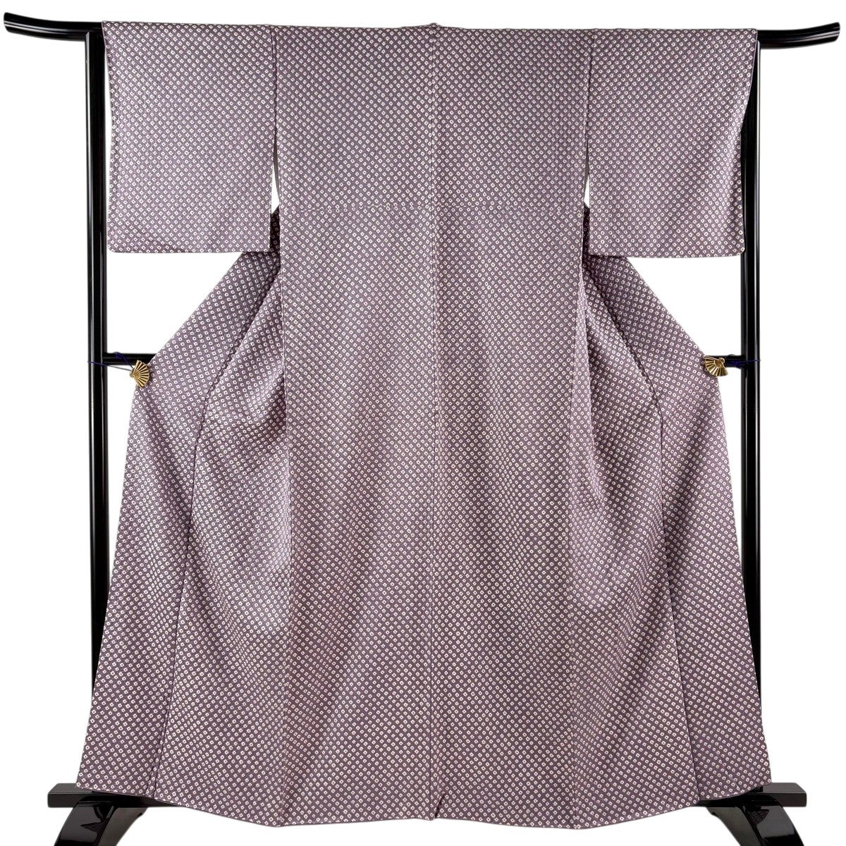 小紋 身丈151.5cm 裄丈64cm M 薄物 絽 草花 濃紫 正絹 名品