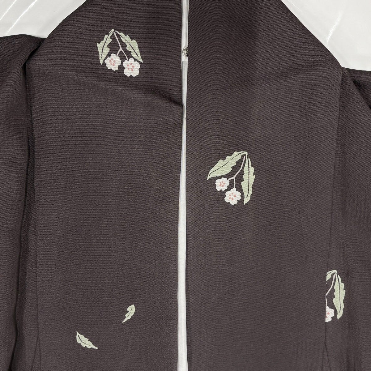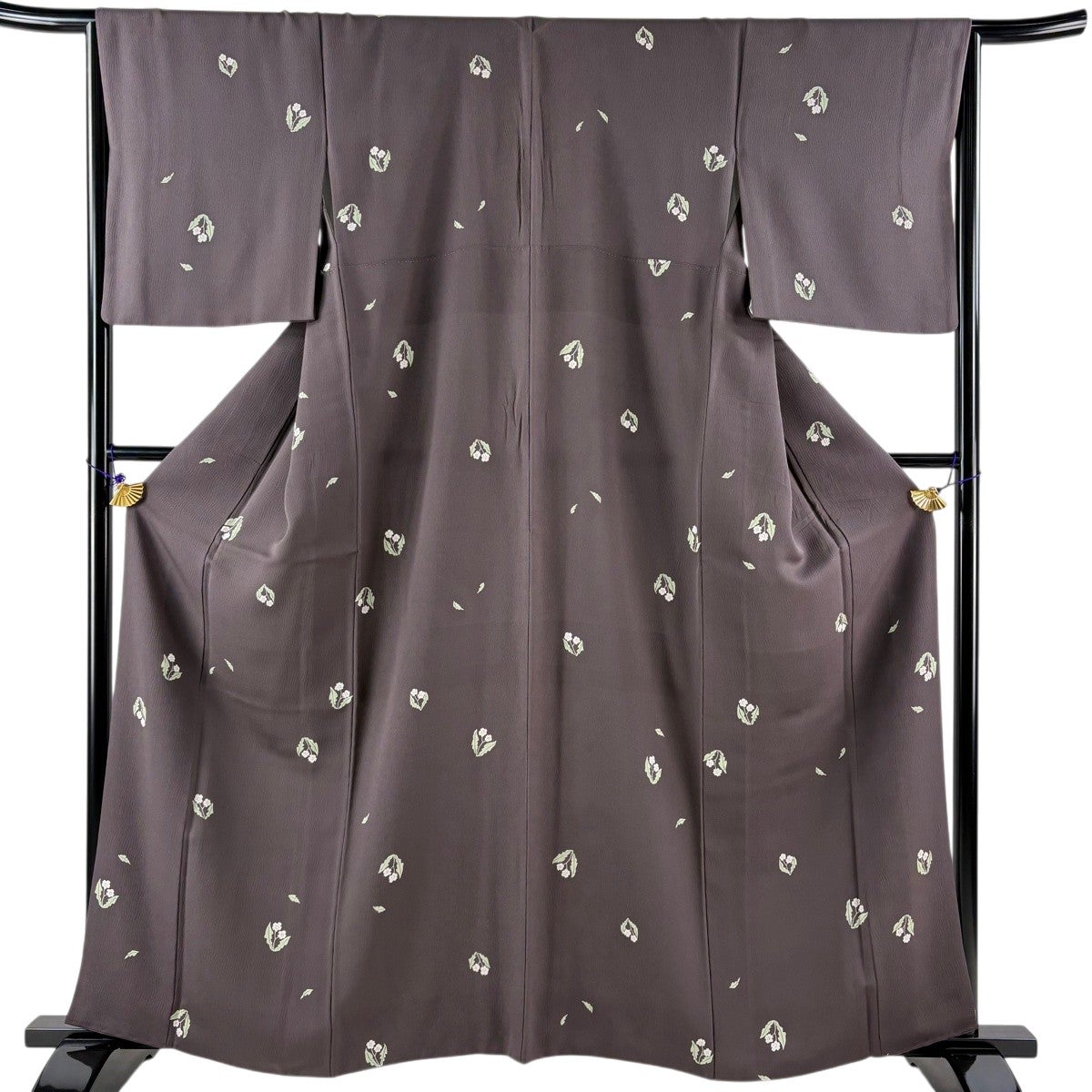 【美品】 小紋 身丈158cm 裄丈63cm S 袷 草花 灰茶 正絹 秀品