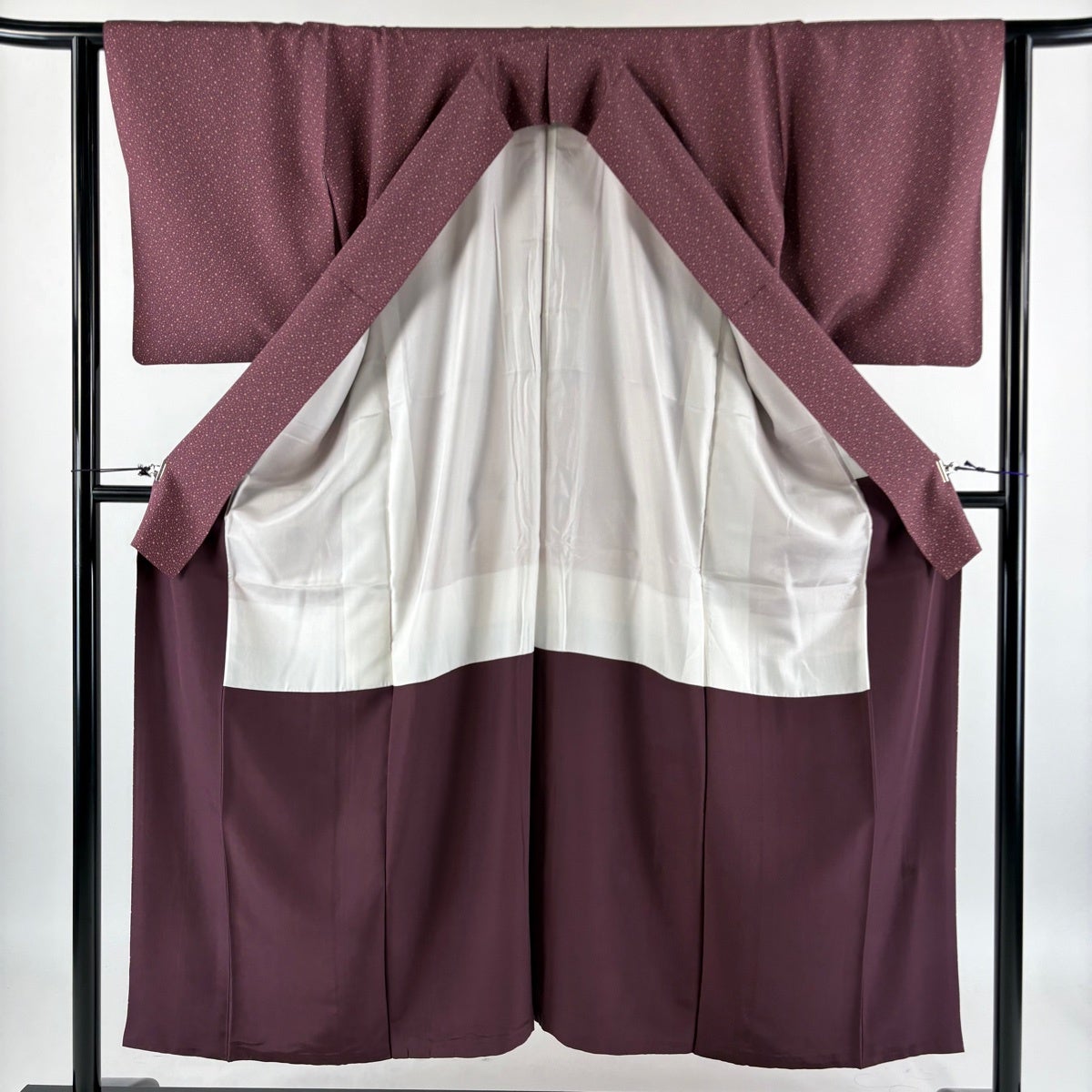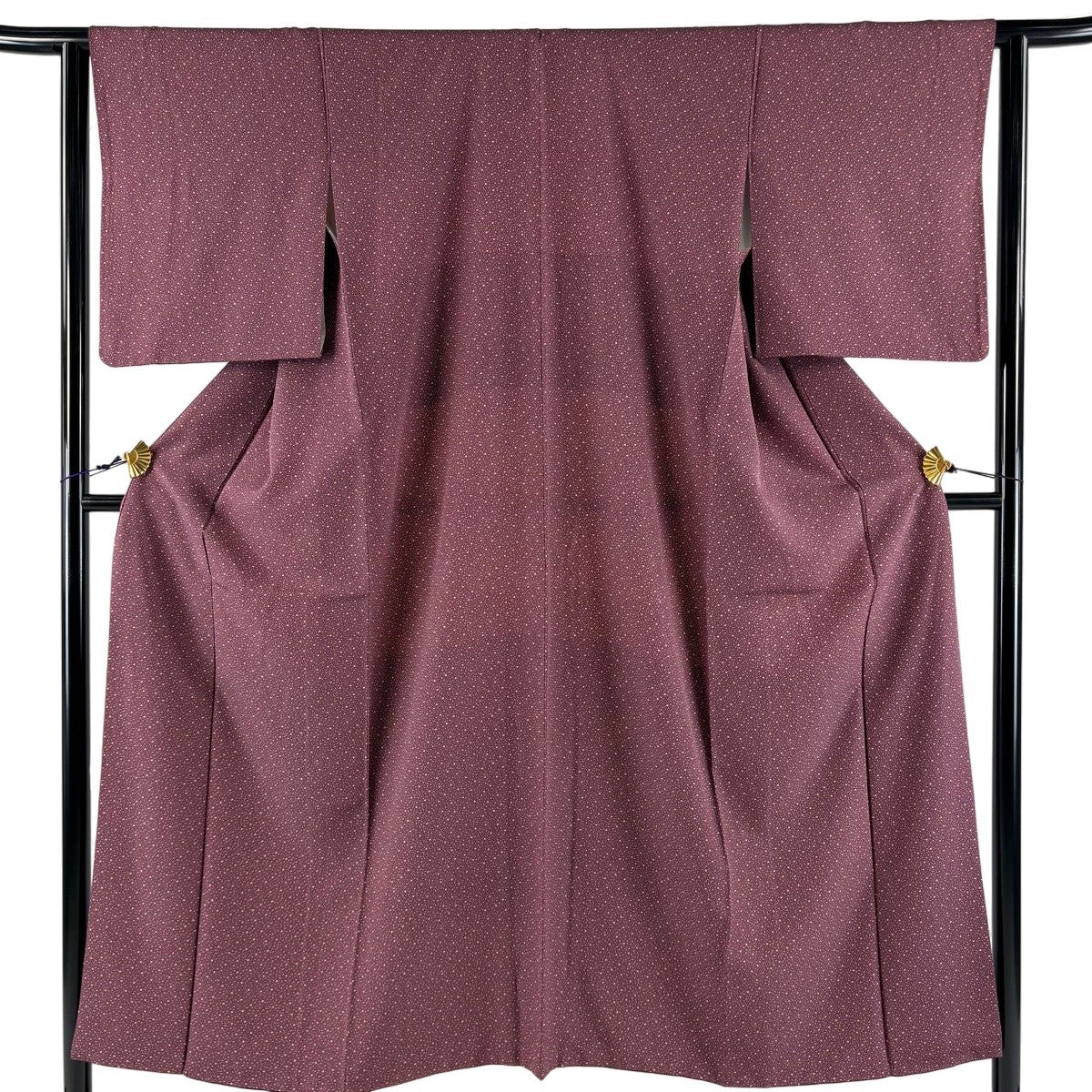小紋 身丈158.5cm 裄丈64.5cm M 薄物 絽 露芝 薄小豆 正絹 秀品