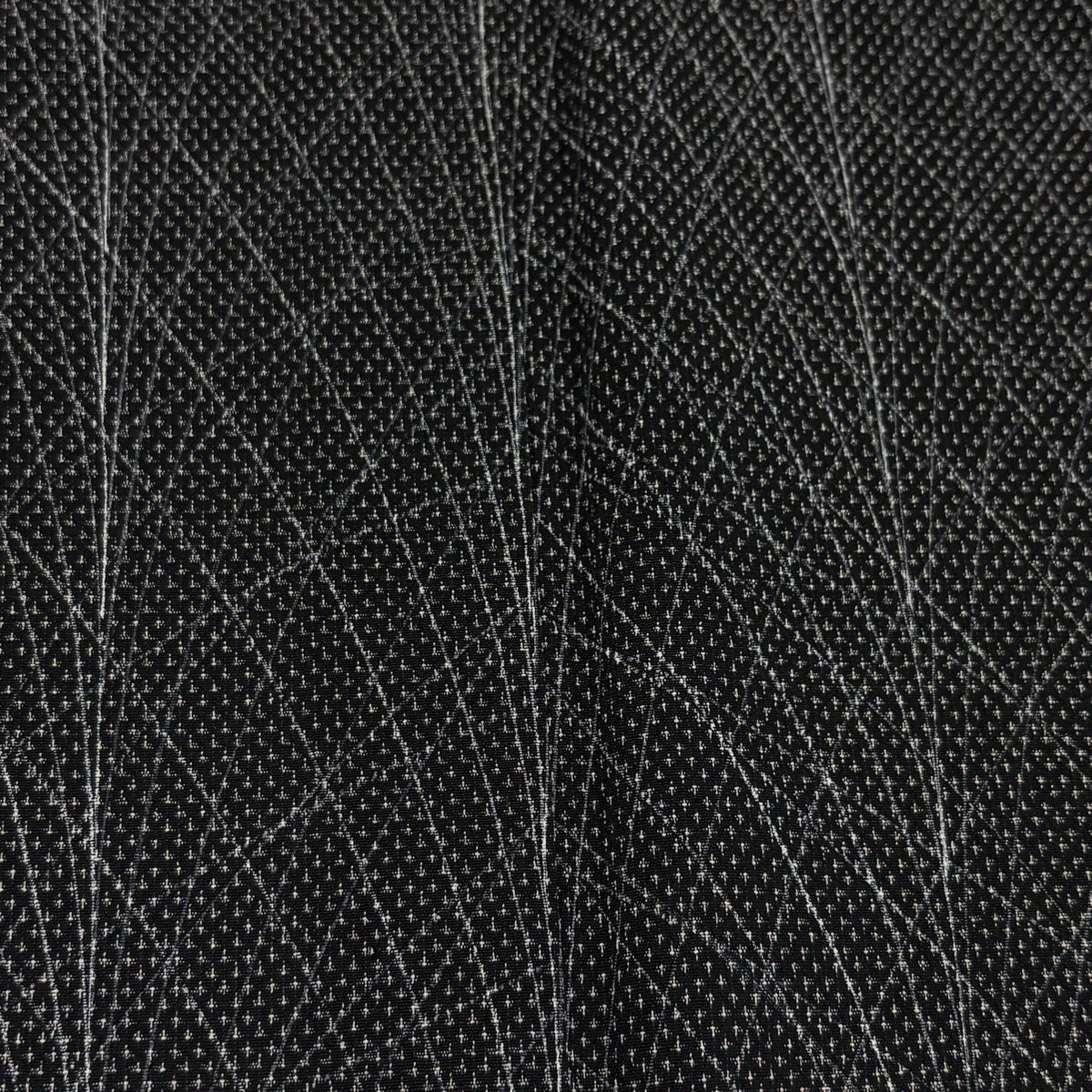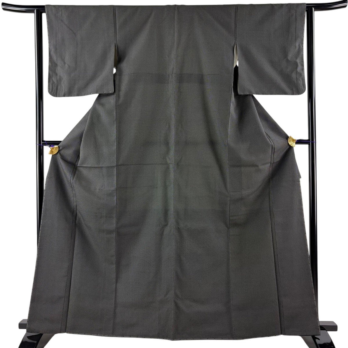 小紋 身丈153.5cm 裄丈63cm S 単衣 紬地 葉柄 黒灰 正絹 秀品