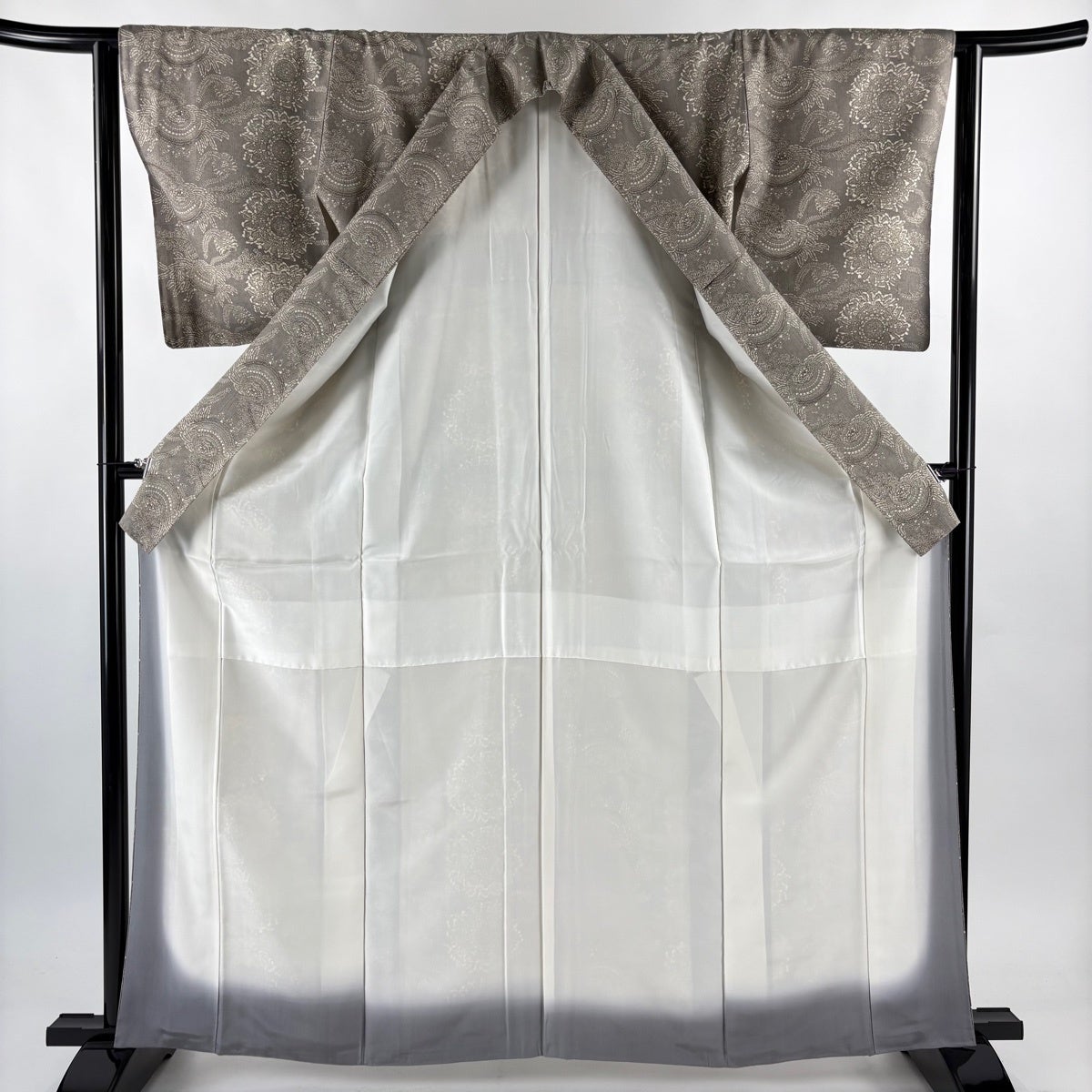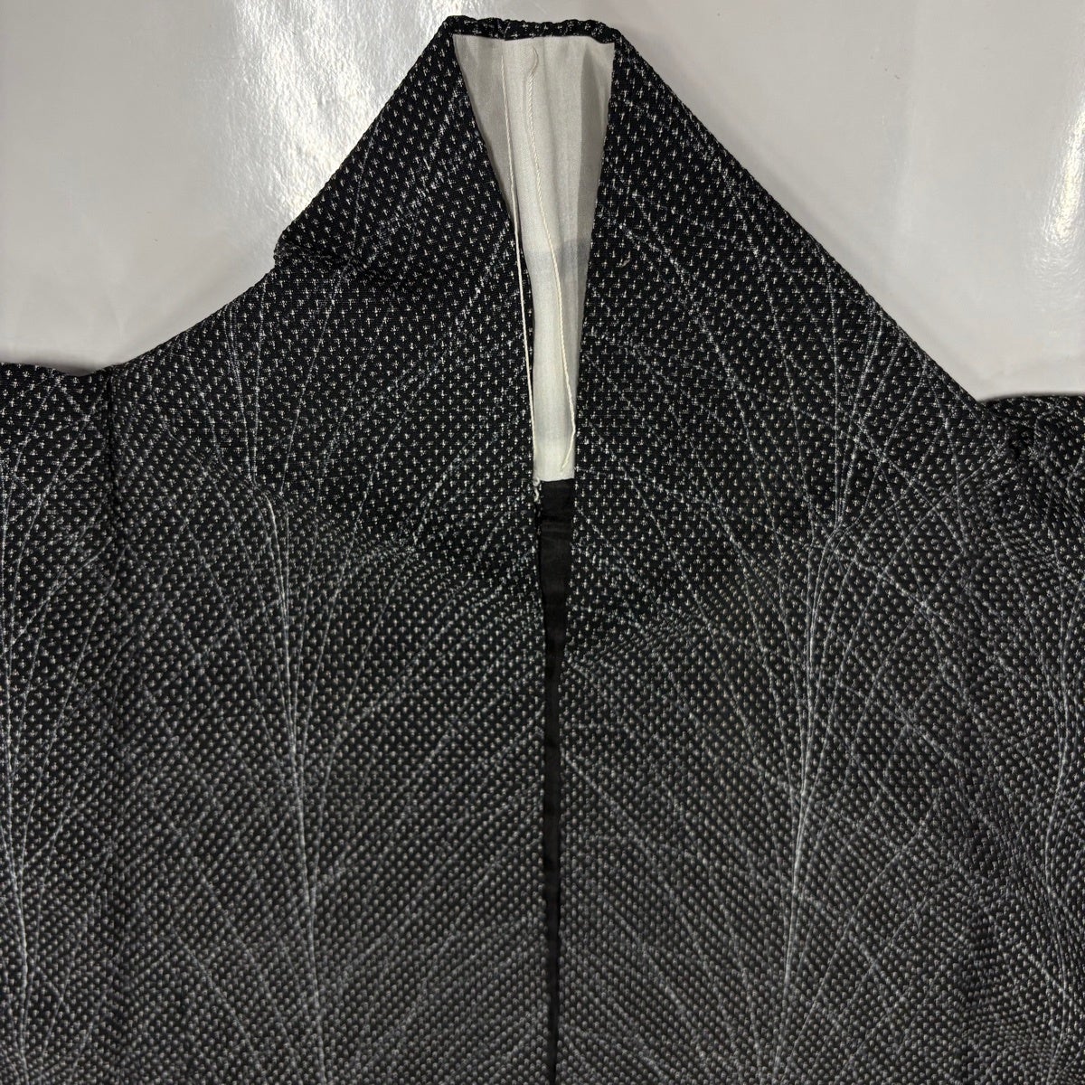 【美品】 小紋 身丈155cm 裄丈66cm M 袷 幾何学 灰色 正絹 優品