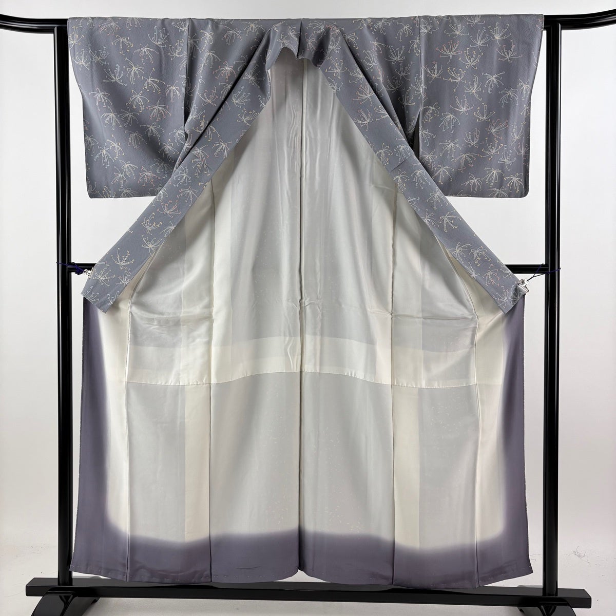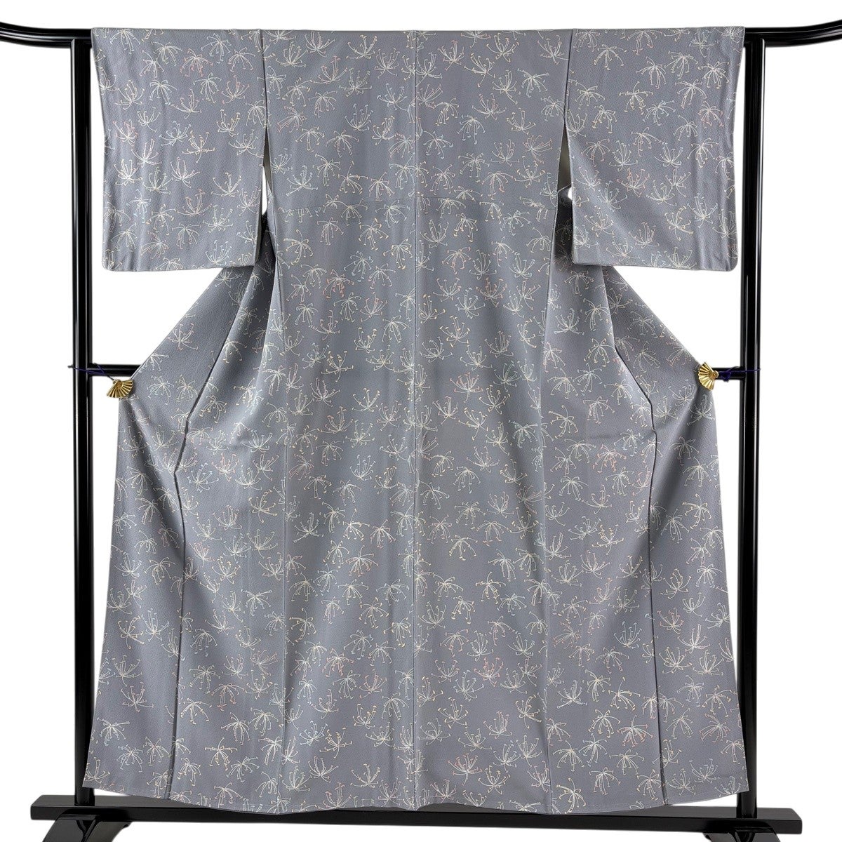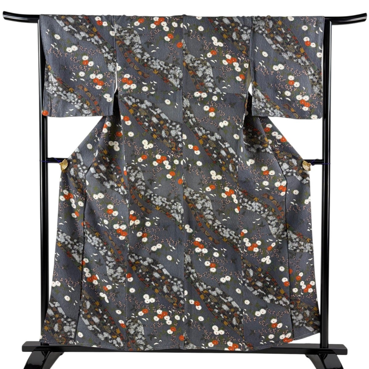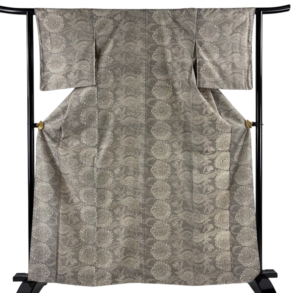 小紋 身丈156.5cm 裄丈65cm M 袷 菊 萩 金銀彩 灰色 正絹 秀品