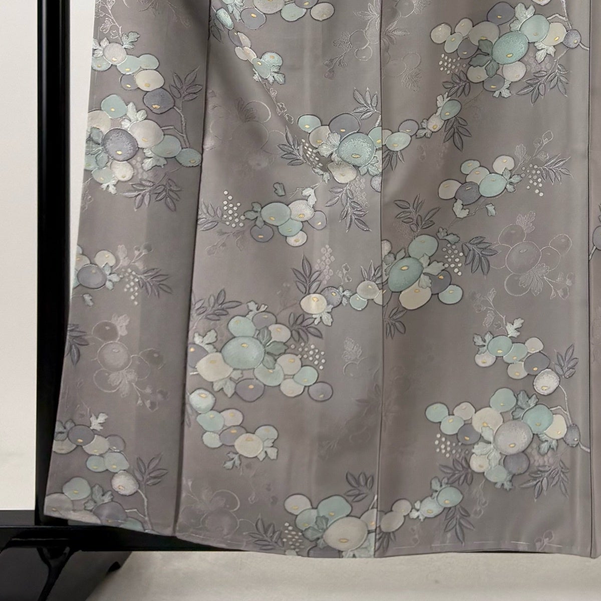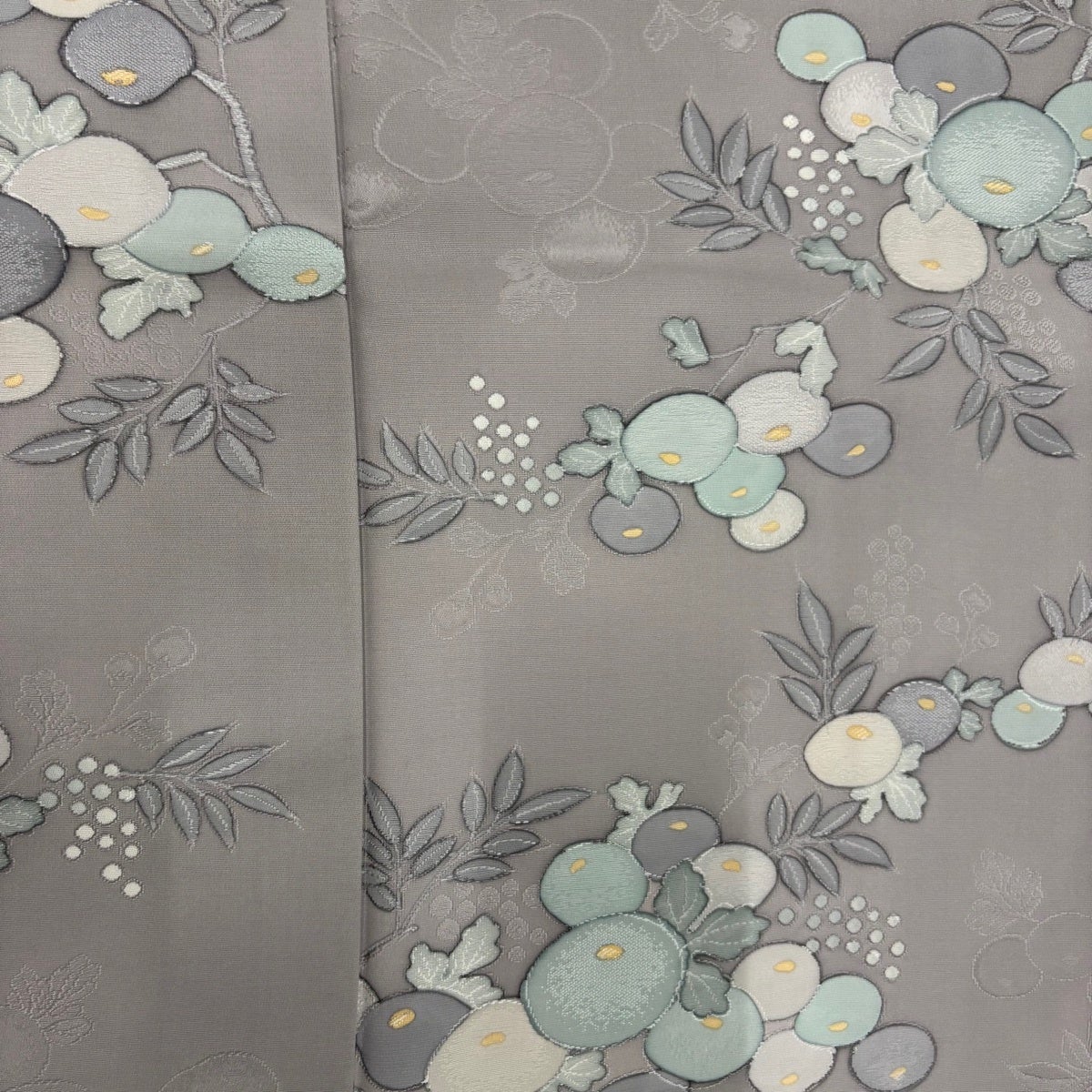 小紋 身丈159.5cm 裄丈65cm M 袷 草花 有職文様 灰緑 正絹 優品