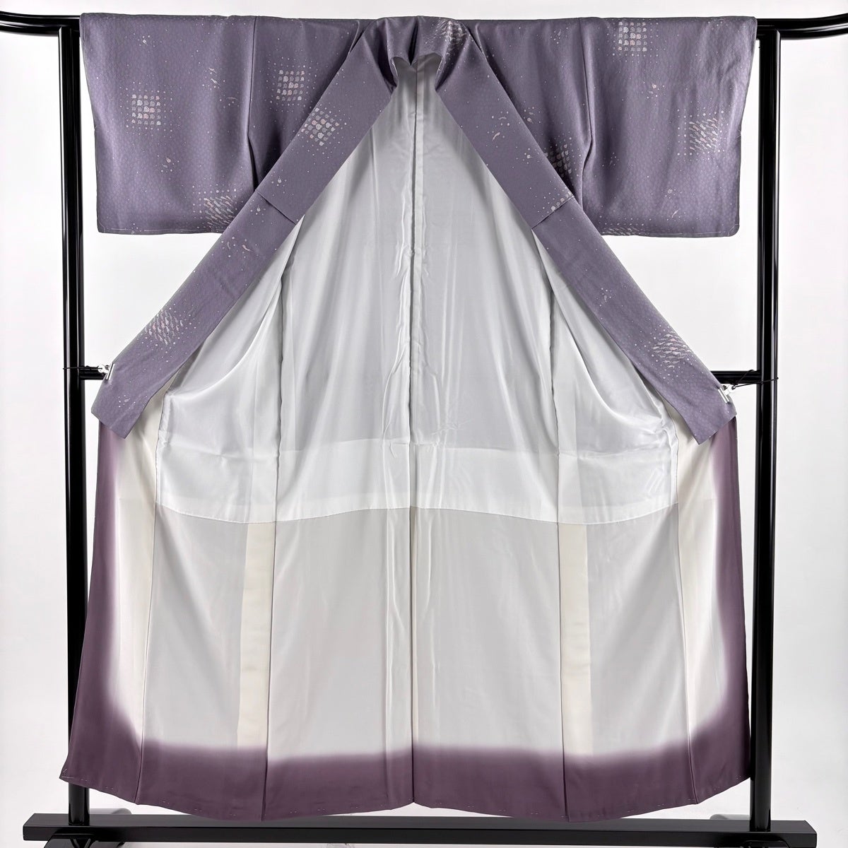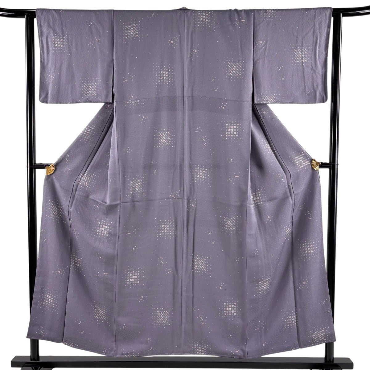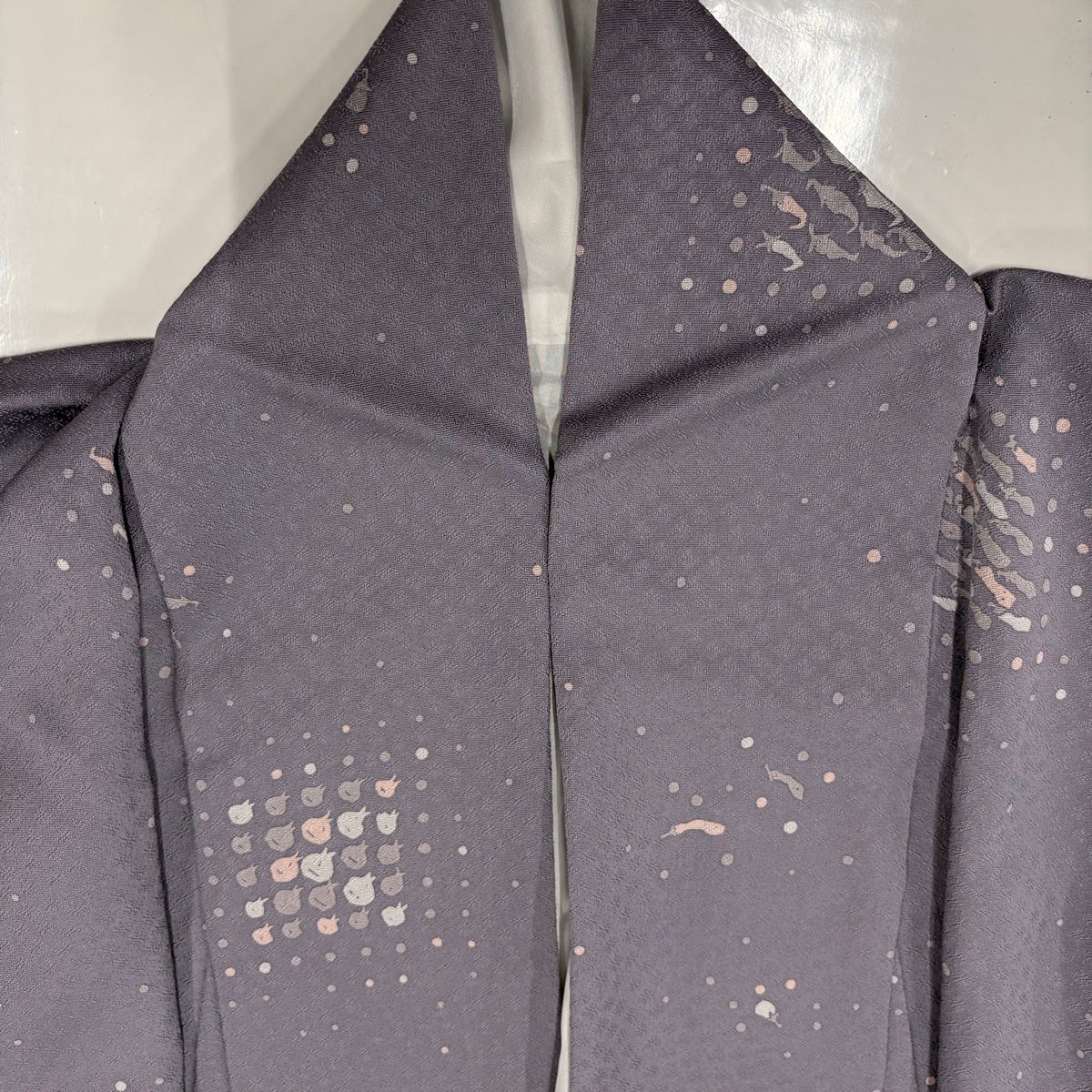 小紋 身丈158.5cm 裄丈63.5cm S 袷 万寿菊 地紋 灰紫 正絹 秀品