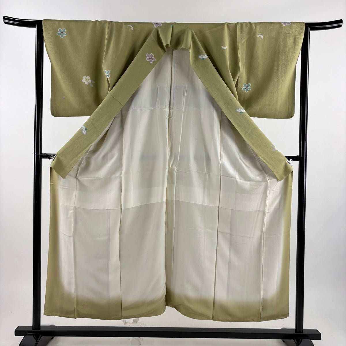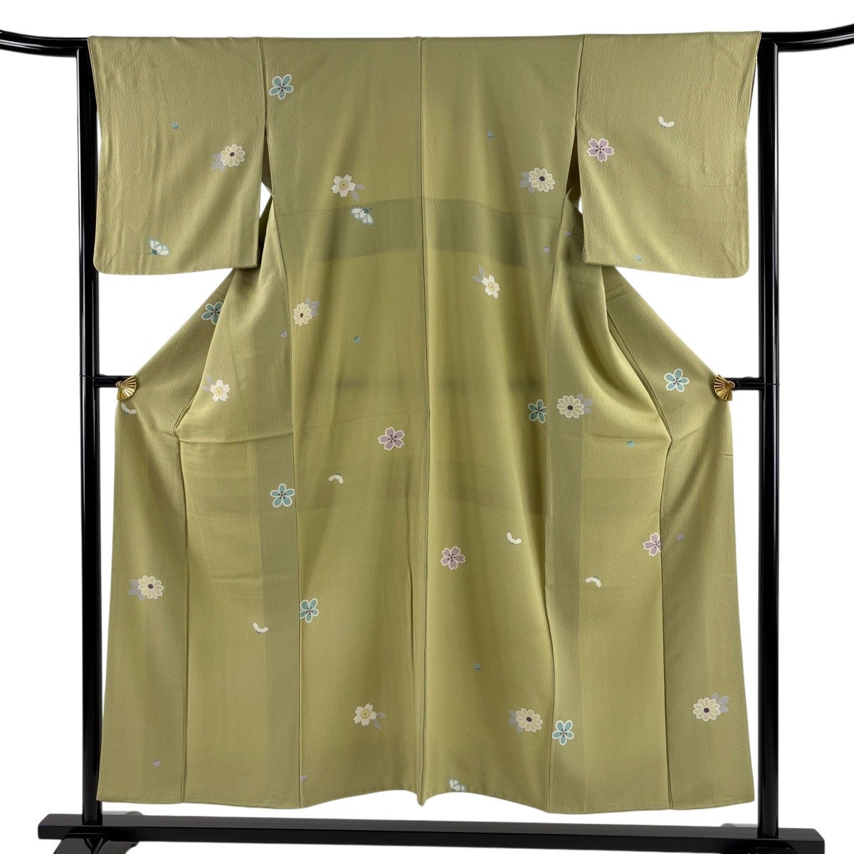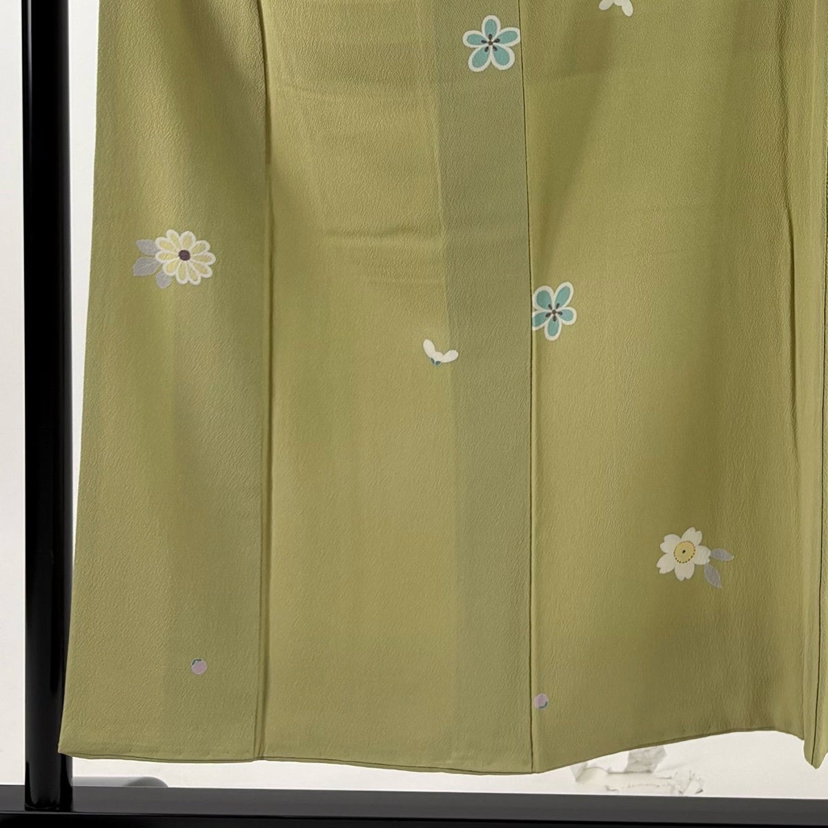 小紋 身丈160.5cm 裄丈64cm M 袷 蔦 縮緬 よもぎ色 正絹 優品