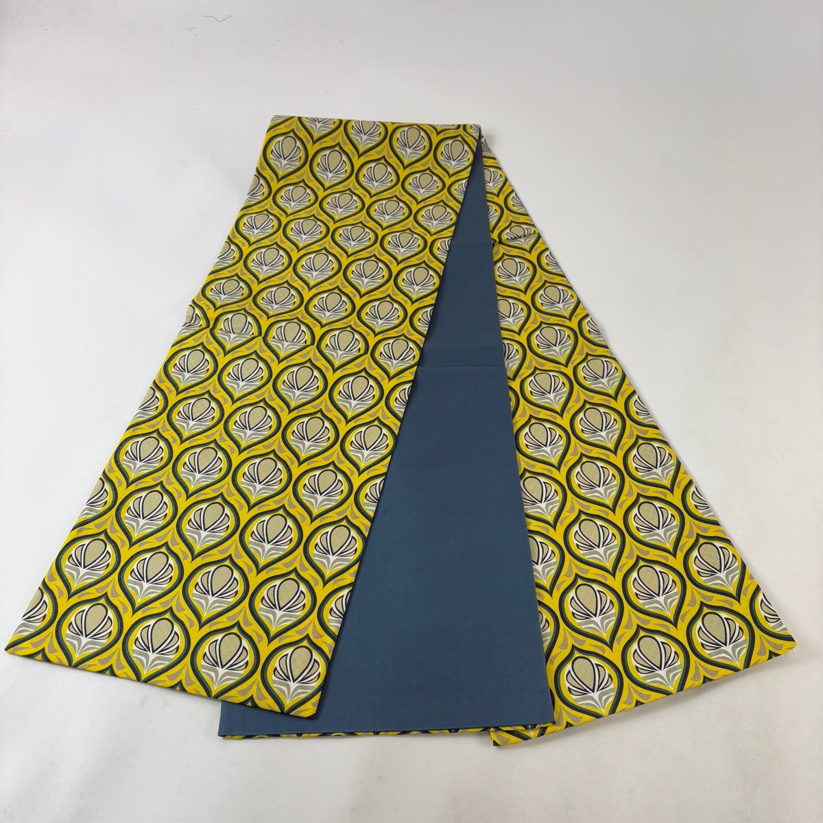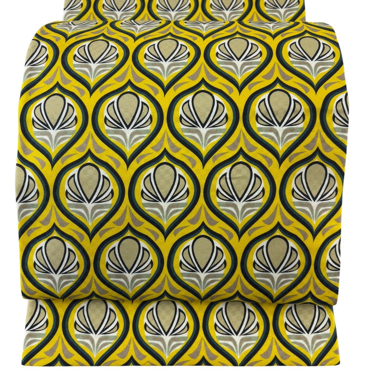 【美品】 袋名古屋帯 秀品 幾何学 草花 黄色 正絹