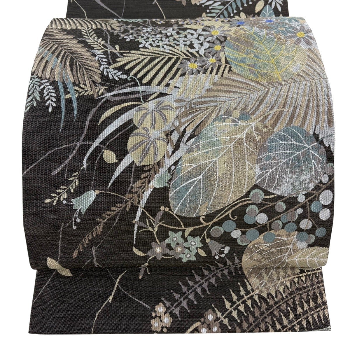 名古屋帯 秀品 夏帯 松葉仕立て 八寸名古屋帯 草花 金糸 箔 薄緑 正絹