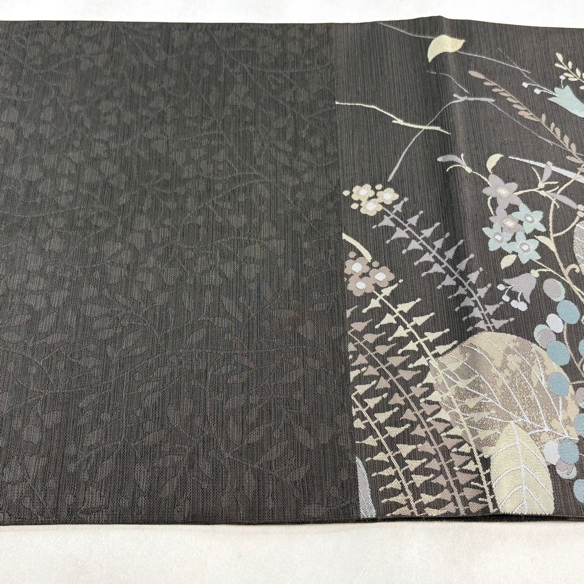 【美品】半幅帯 秀品 証紙あり 本場博多織 草花 花唐草 灰紫 正絹