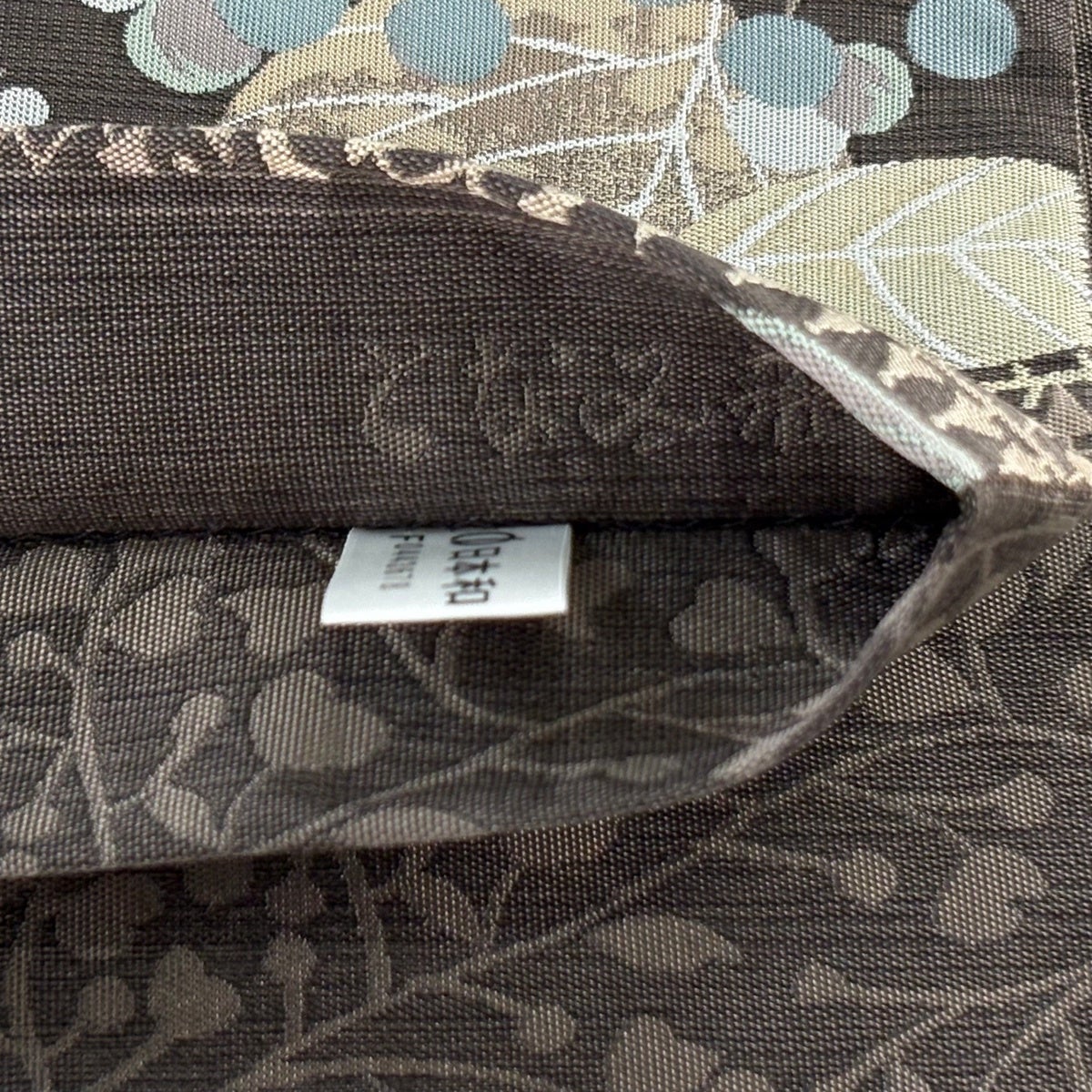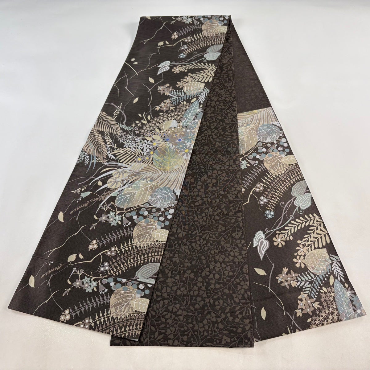 名古屋帯 秀品 八寸名古屋帯 松葉仕立て 紬地 草花 幾何学 焦茶色 正絹