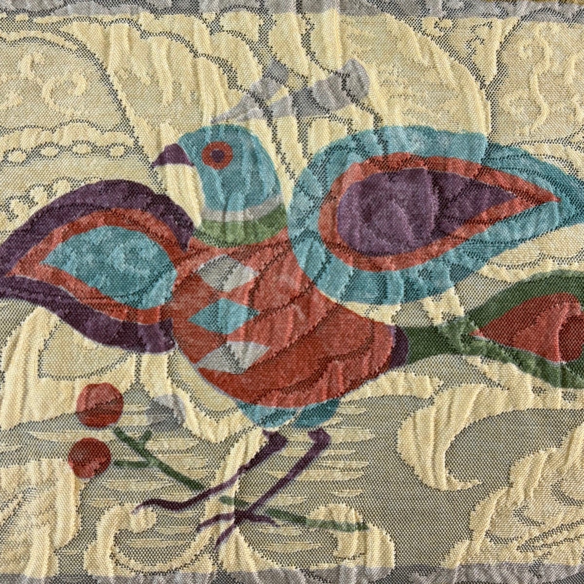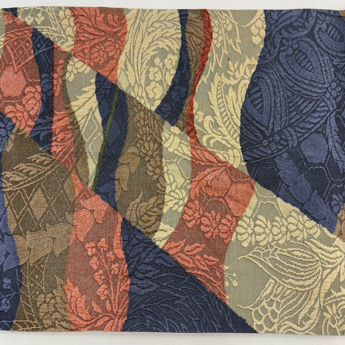 【美品】 袋帯 秀品 草花 幾何学模様 ベージュ お太鼓柄 正絹