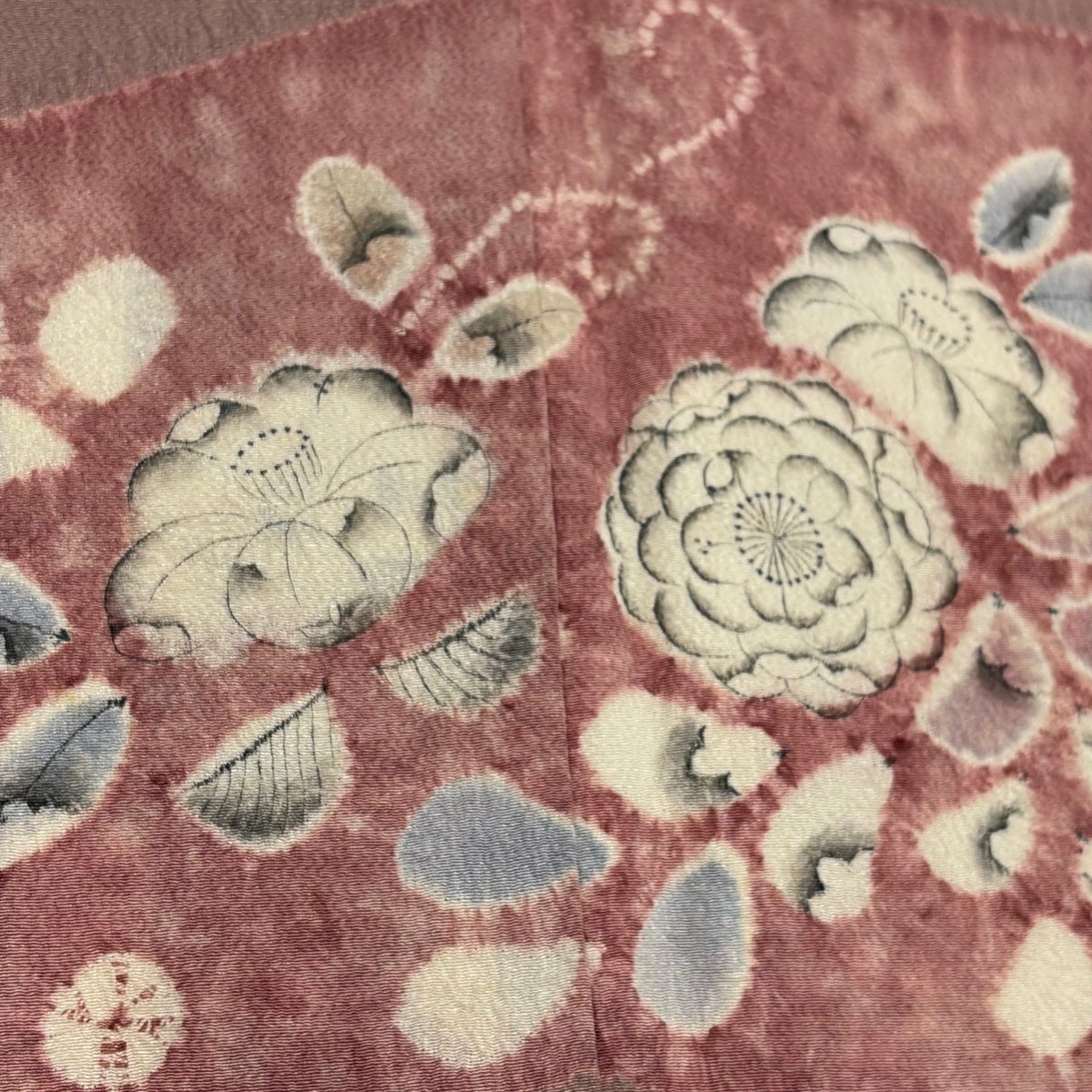 付下げ 身丈151.5cm 裄丈62cm S 袷 花唐草 椿 絞り 縮緬 小豆色 正絹 秀品