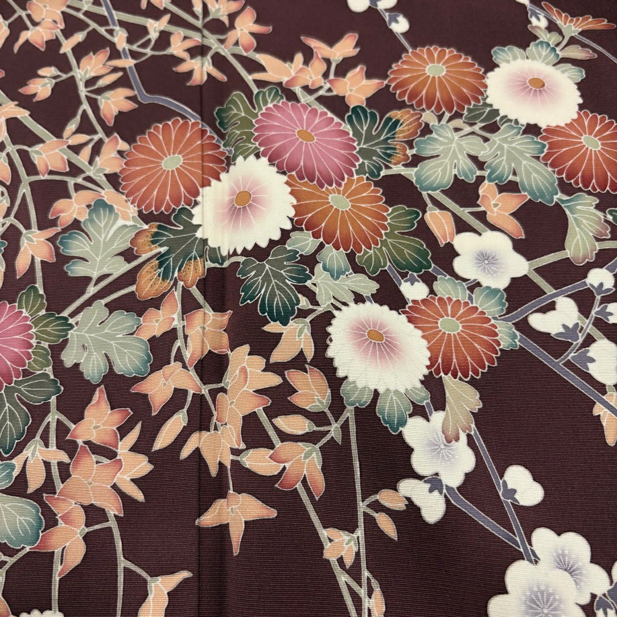 付下げ 身丈153.5cm 裄丈62cm S 袷 菊 萩 刺繍 絞り 小豆色 正絹 秀品