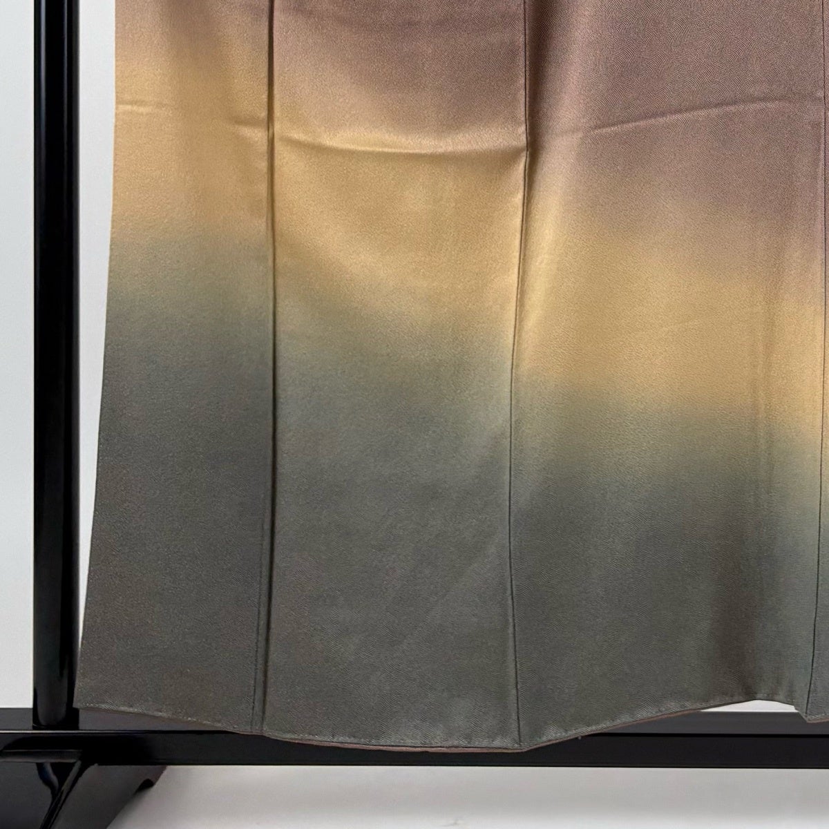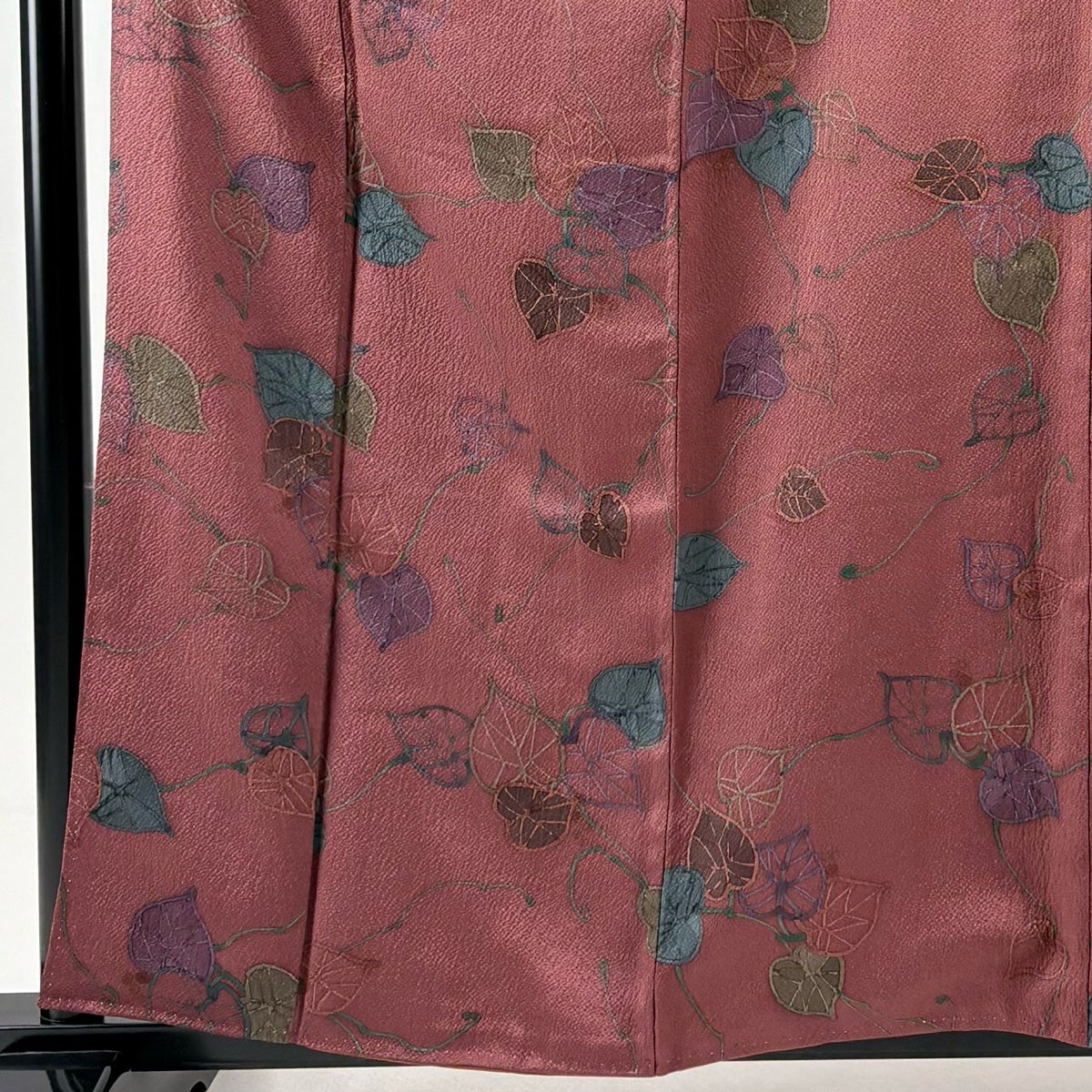 付下げ 身丈151cm 裄丈63.5cm S 袷 草花 地紋 裾ぼかし 小豆色 正絹 秀品