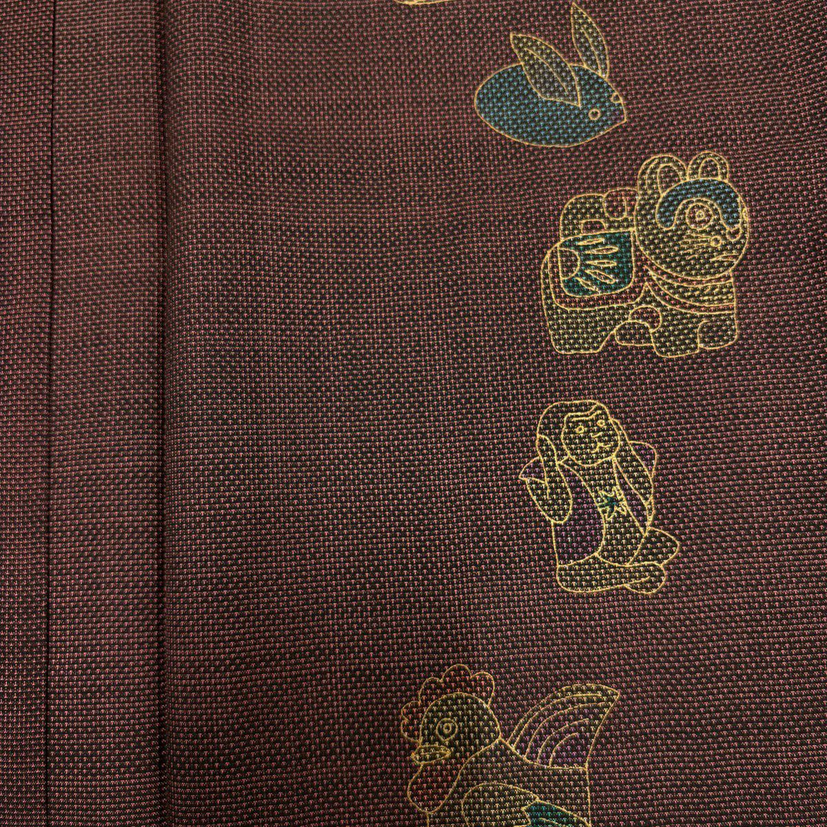 付下げ 身丈161cm 裄丈66cm M 袷 鶴 草花 刺繍 金糸 小豆色 正絹 秀品 一つ紋