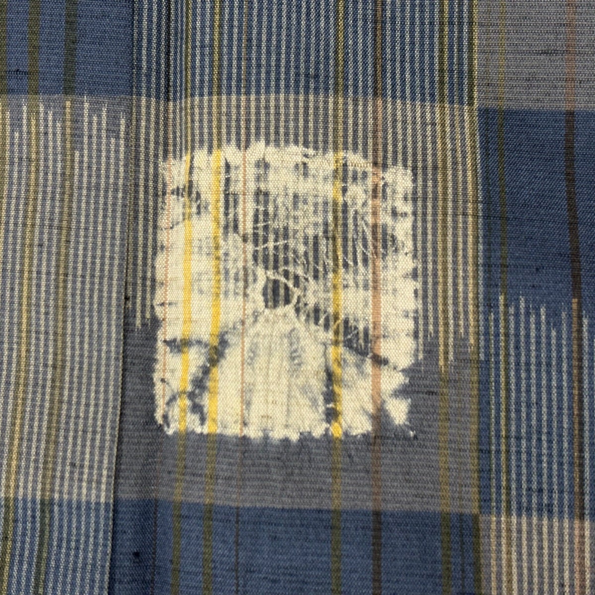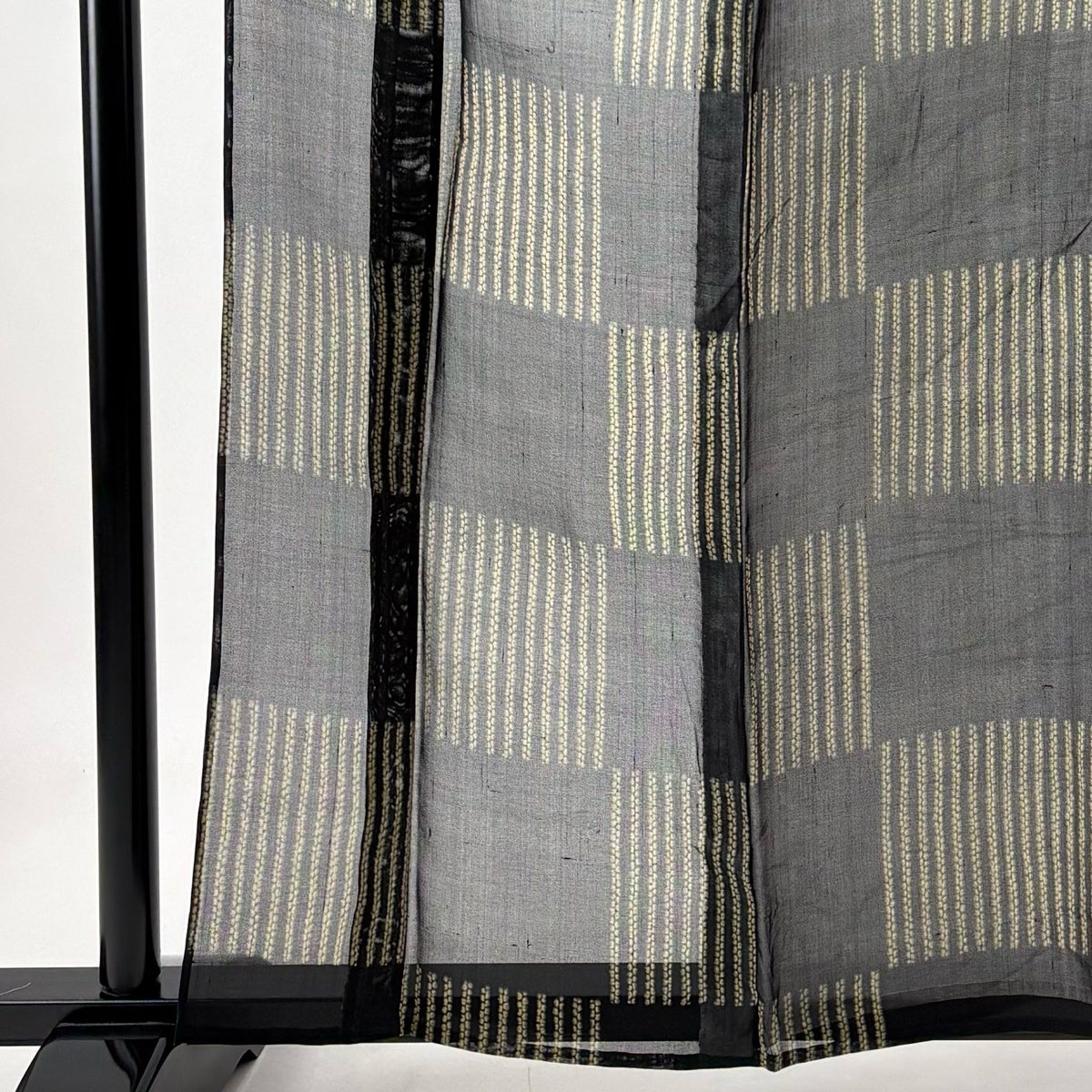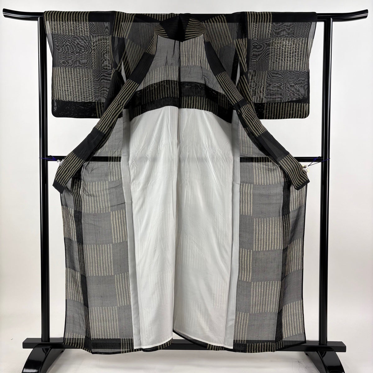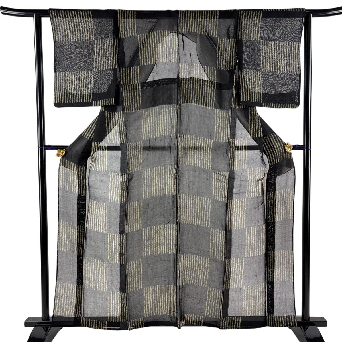 小紋 身丈160cm 裄丈61.5cm S 薄物 夏紬地 市松 縞 絞り 黒 正絹 名品