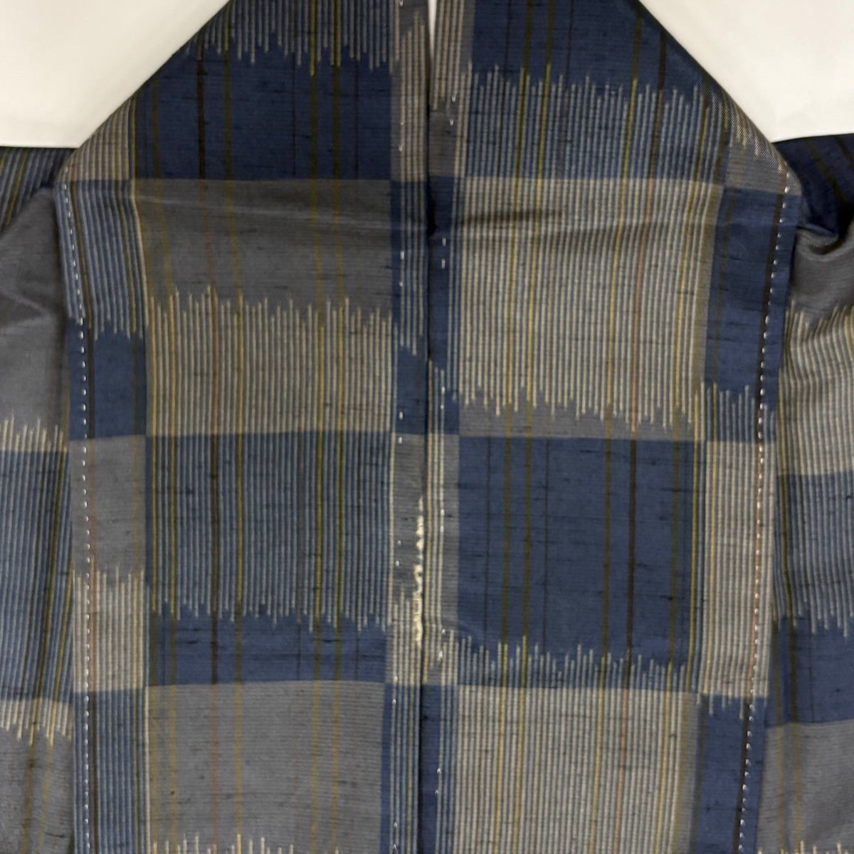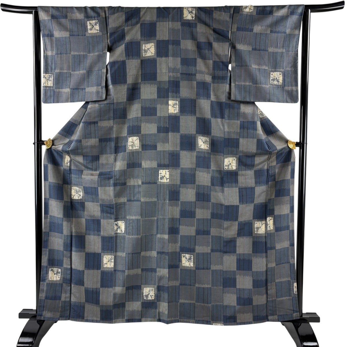 小紋 身丈164cm 裄丈66.5cm M 薄物 絽 市松 幾何学 青灰色 正絹 秀品