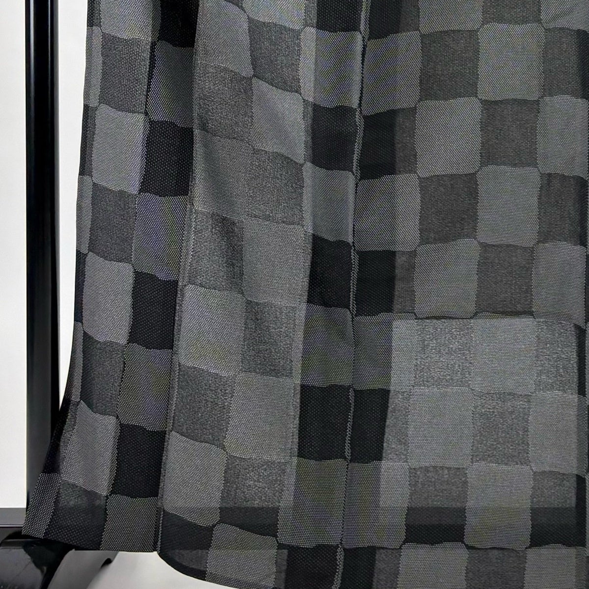 小紋 身丈172cm 裄丈67cm M 薄物 絽 変わり市松 縞 ぼかし 青灰色 正絹 秀品