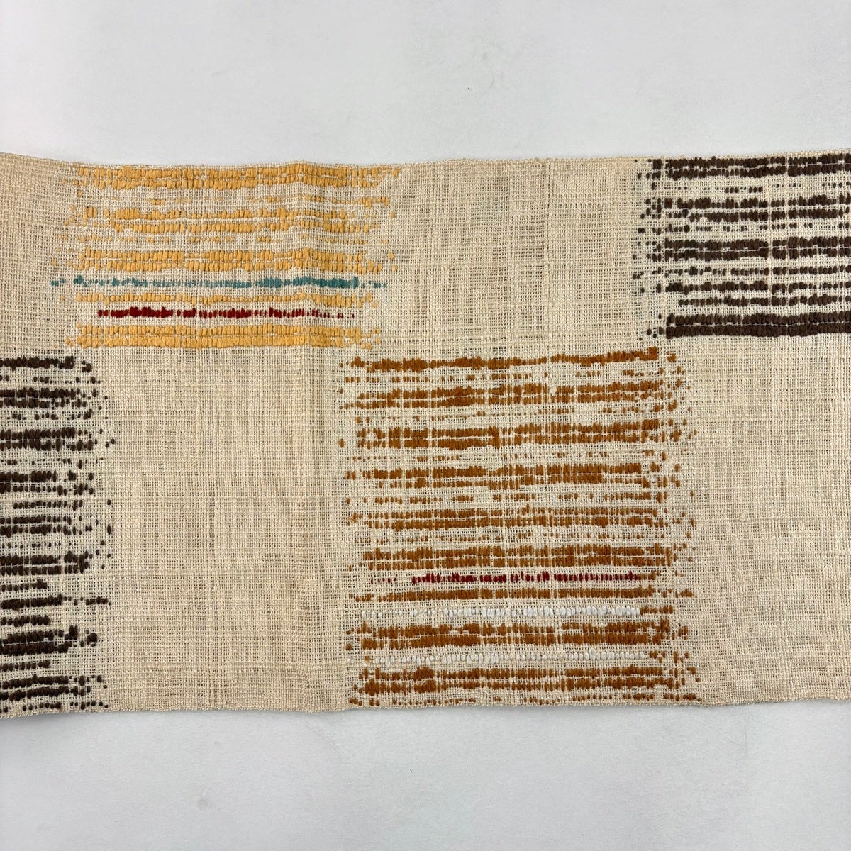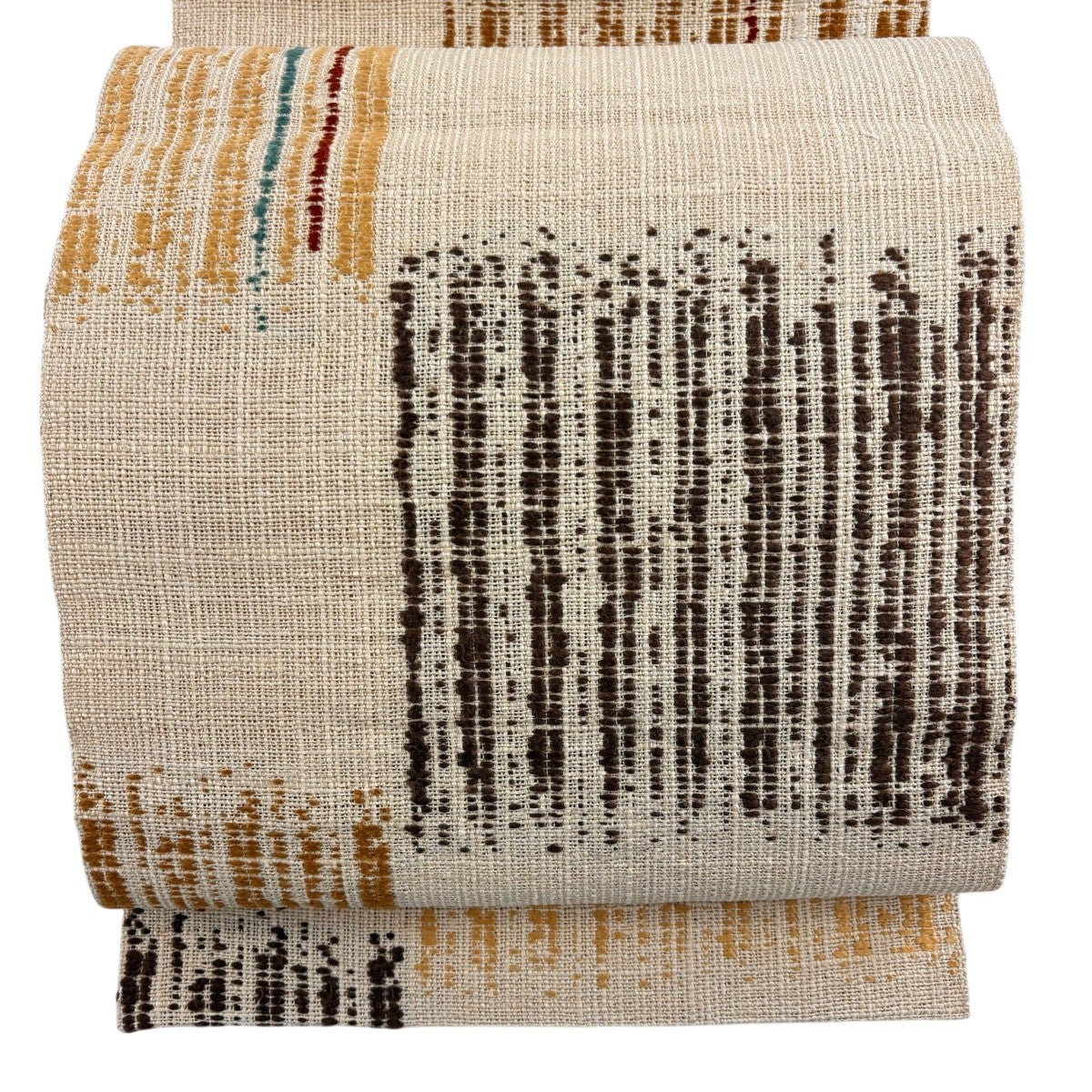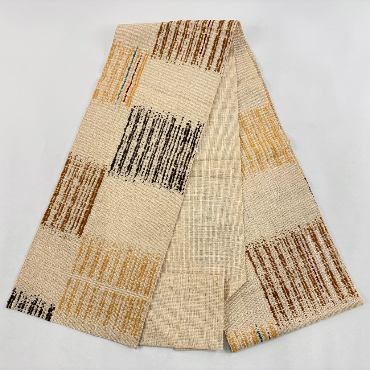 名古屋帯 秀品 夏帯 松葉仕立て 八寸名古屋帯 幾何学模様 変わり市松 金糸 ベージュ 正絹