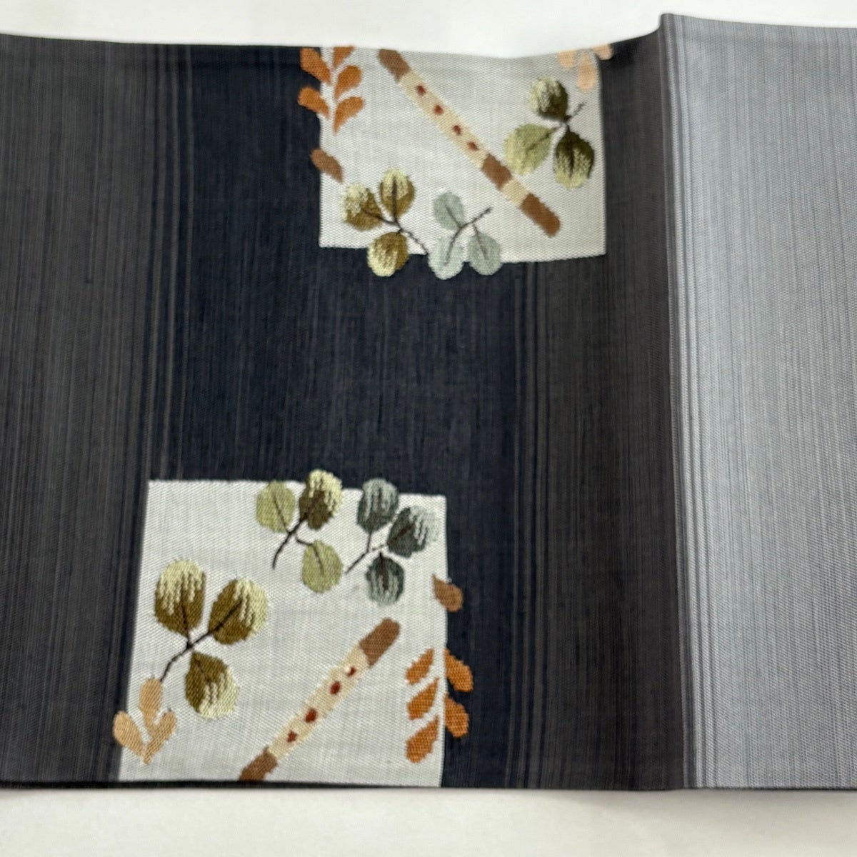 名古屋帯 秀品 夏帯 トンボ 葉柄 箔 ベージュ 正絹