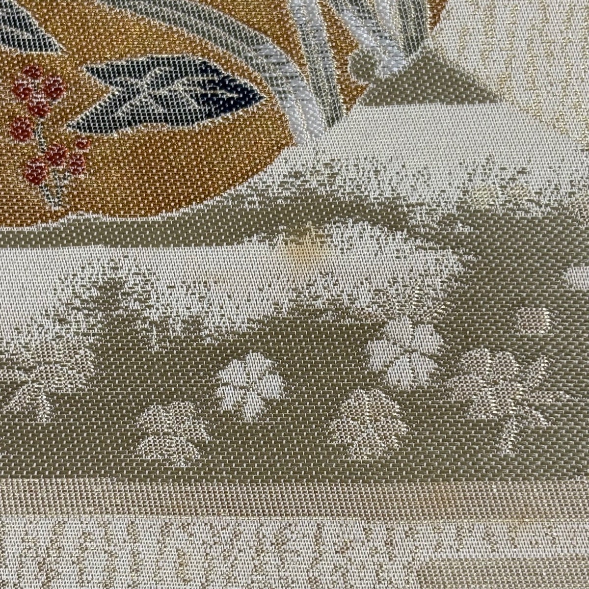名古屋帯 秀品 餅つきうさぎ 桜 刺繍 金彩 ベージュ 正絹