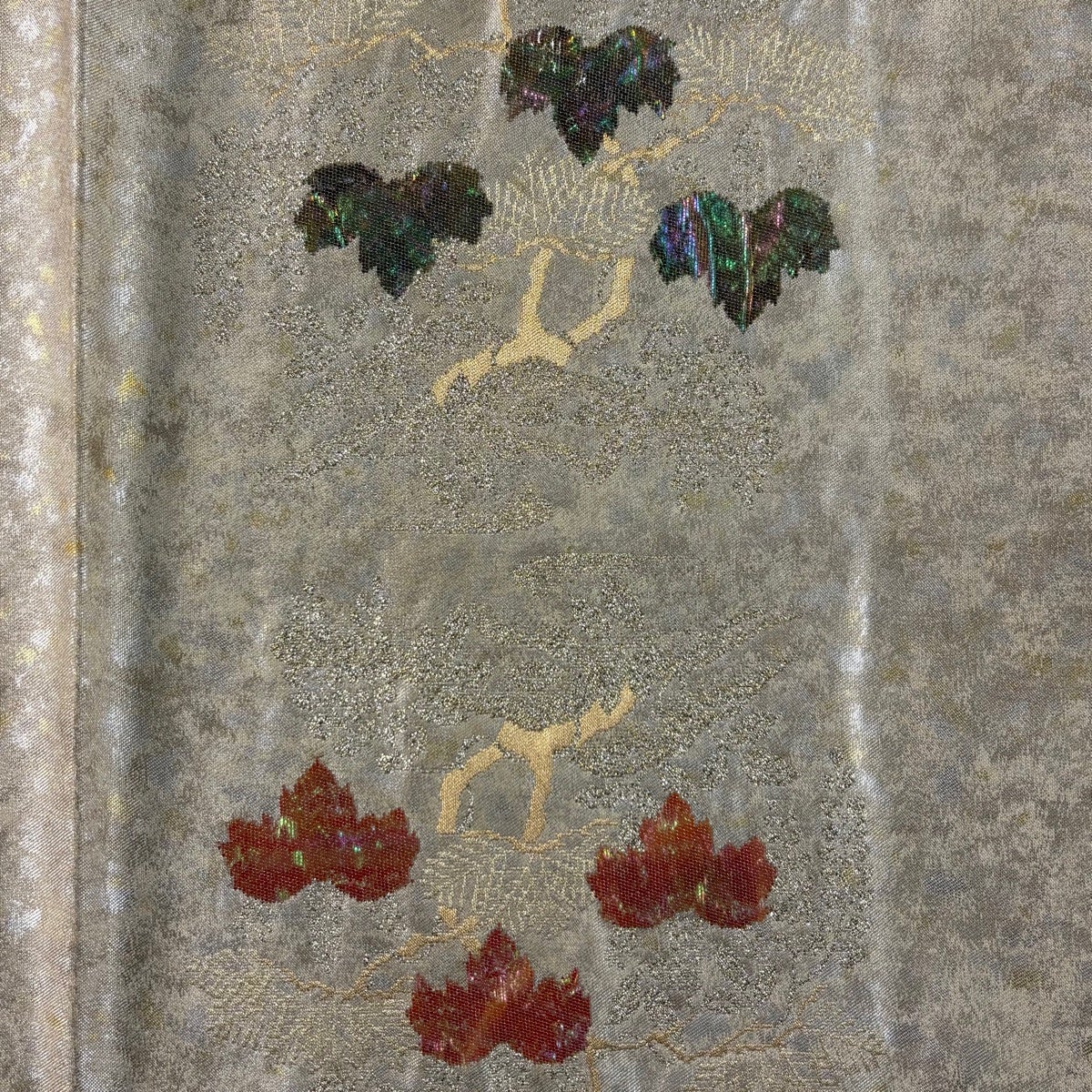 袋帯 秀品 椿 楓 箔 金銀糸 灰紫 六通 正絹