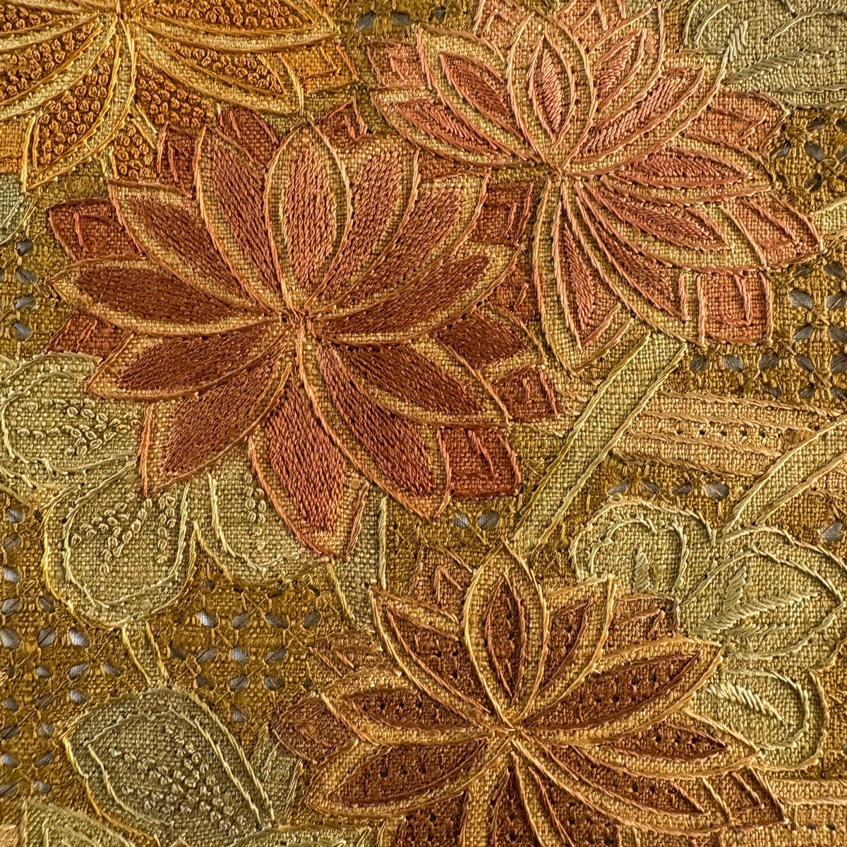 【美品】 袋帯 秀品 草花 幾何学模様 金糸 箔 金色 六通 正絹