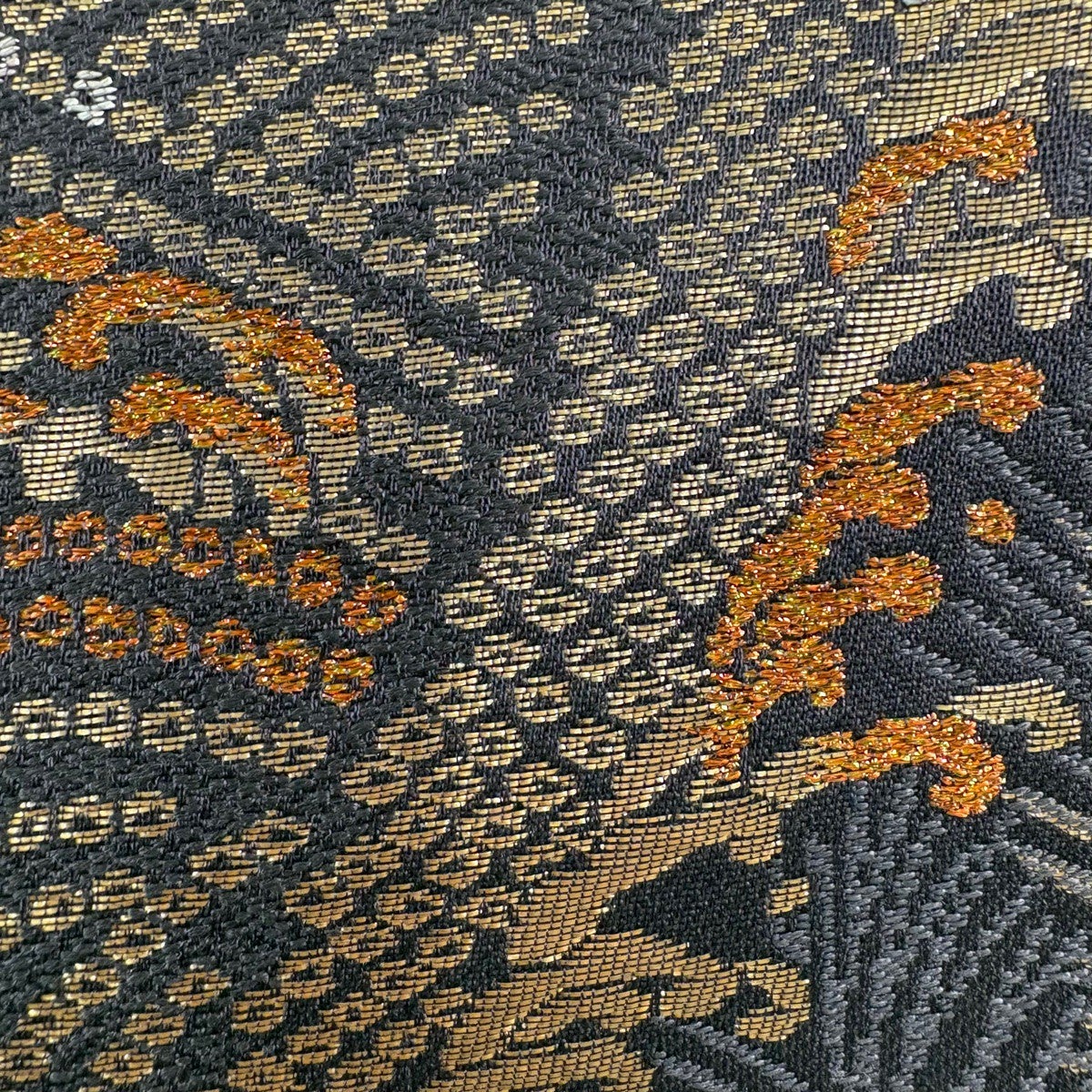 【美品】 袋帯 秀品 華文 草花 金糸 箔 焦茶色 六通 正絹