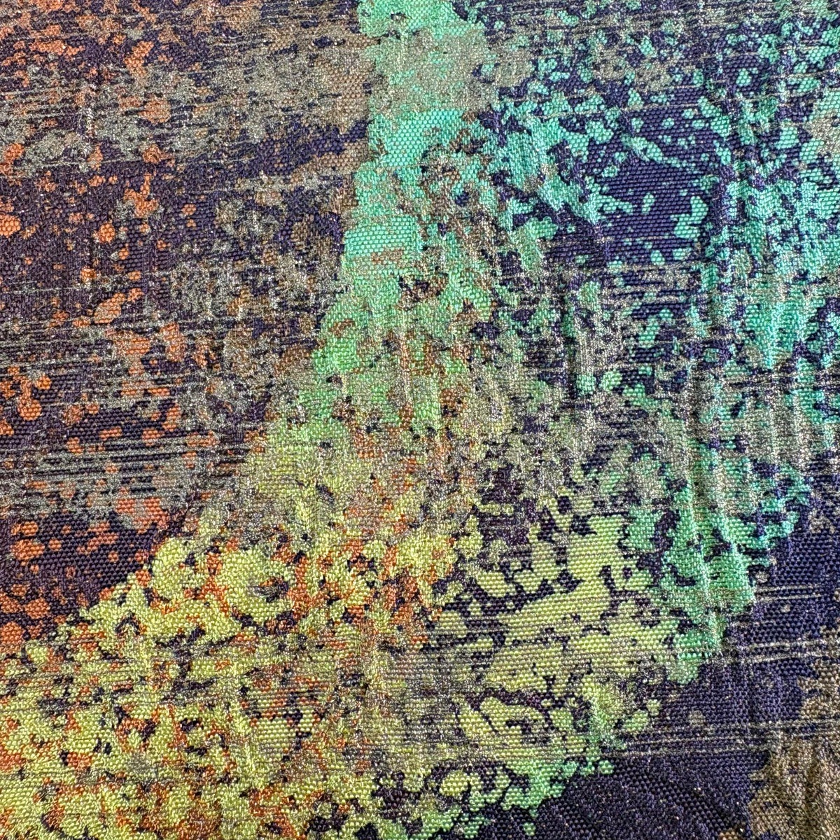 【美品】 袋帯 秀品 辻が花柄 幾何学模様 金糸 箔 緑 六通 正絹