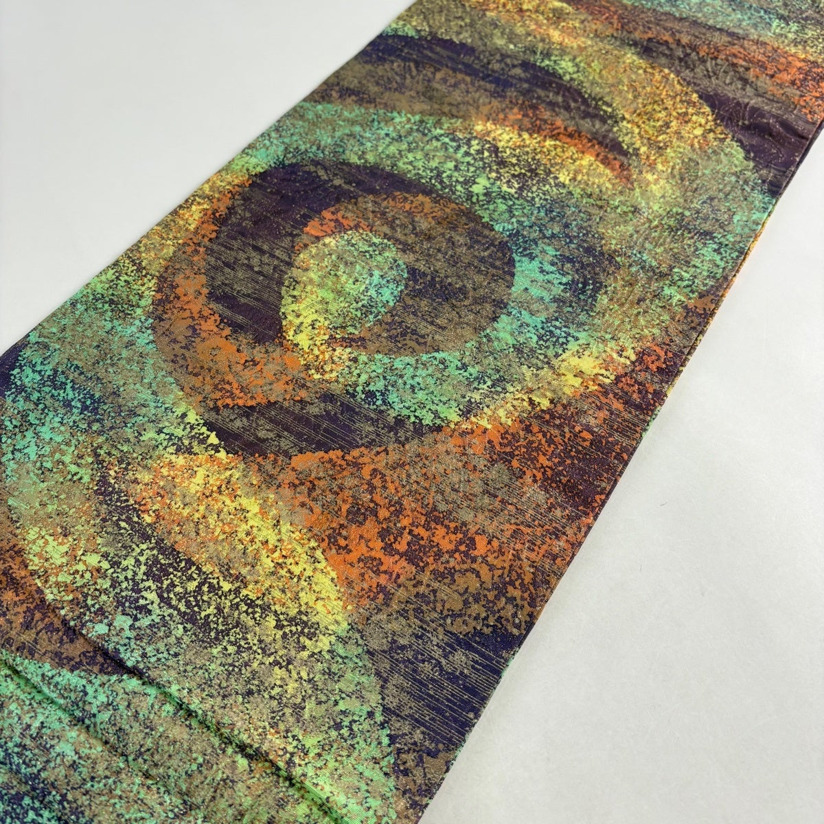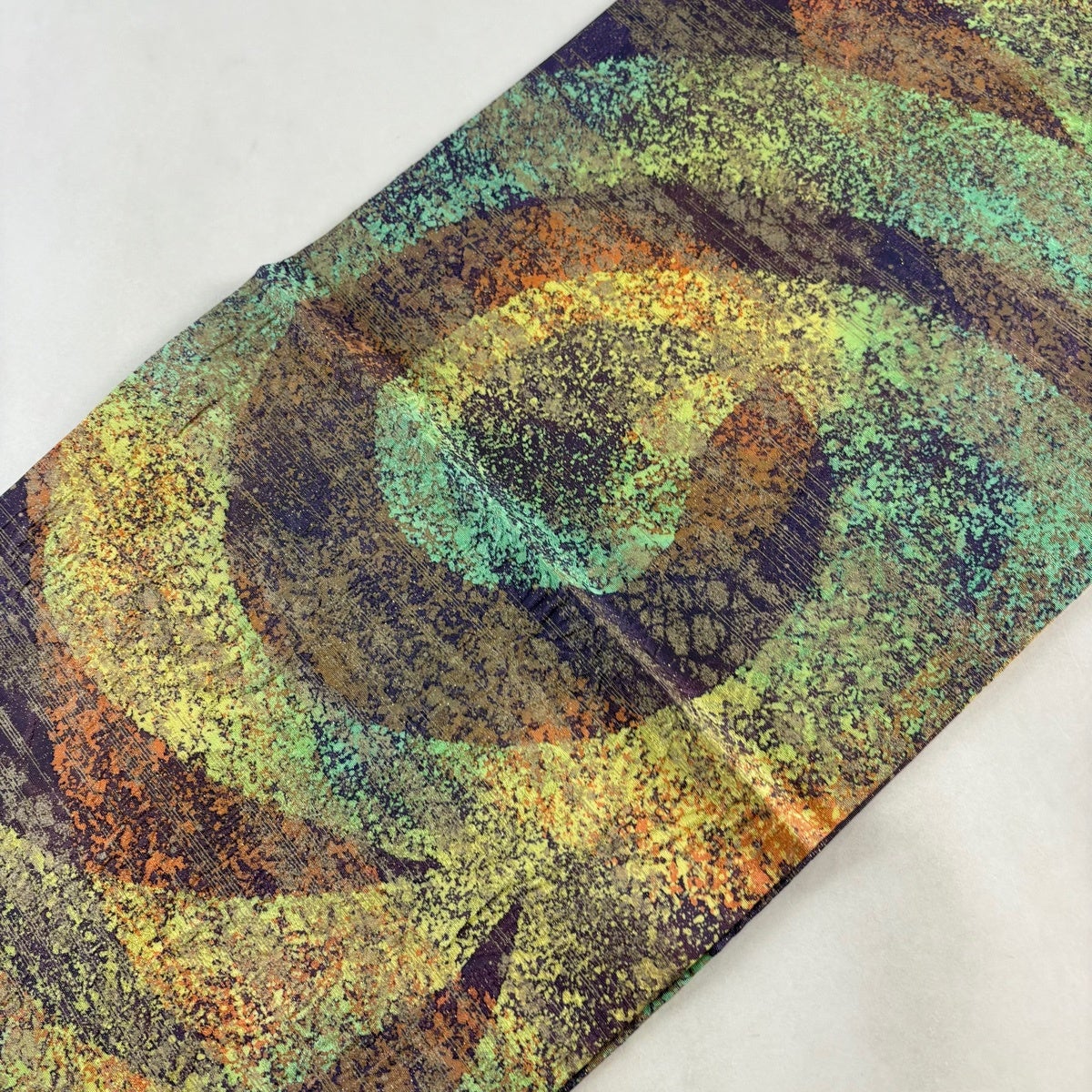 袋帯 秀品 大島紬地 幾何学模様 金彩 緑 全通 正絹