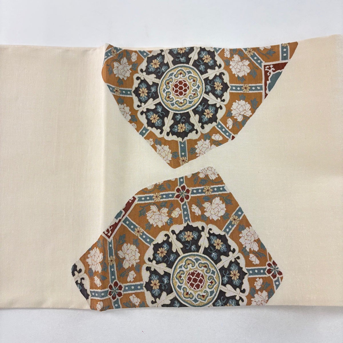 【美品】半幅帯 優品 七宝 ベージュ 化繊