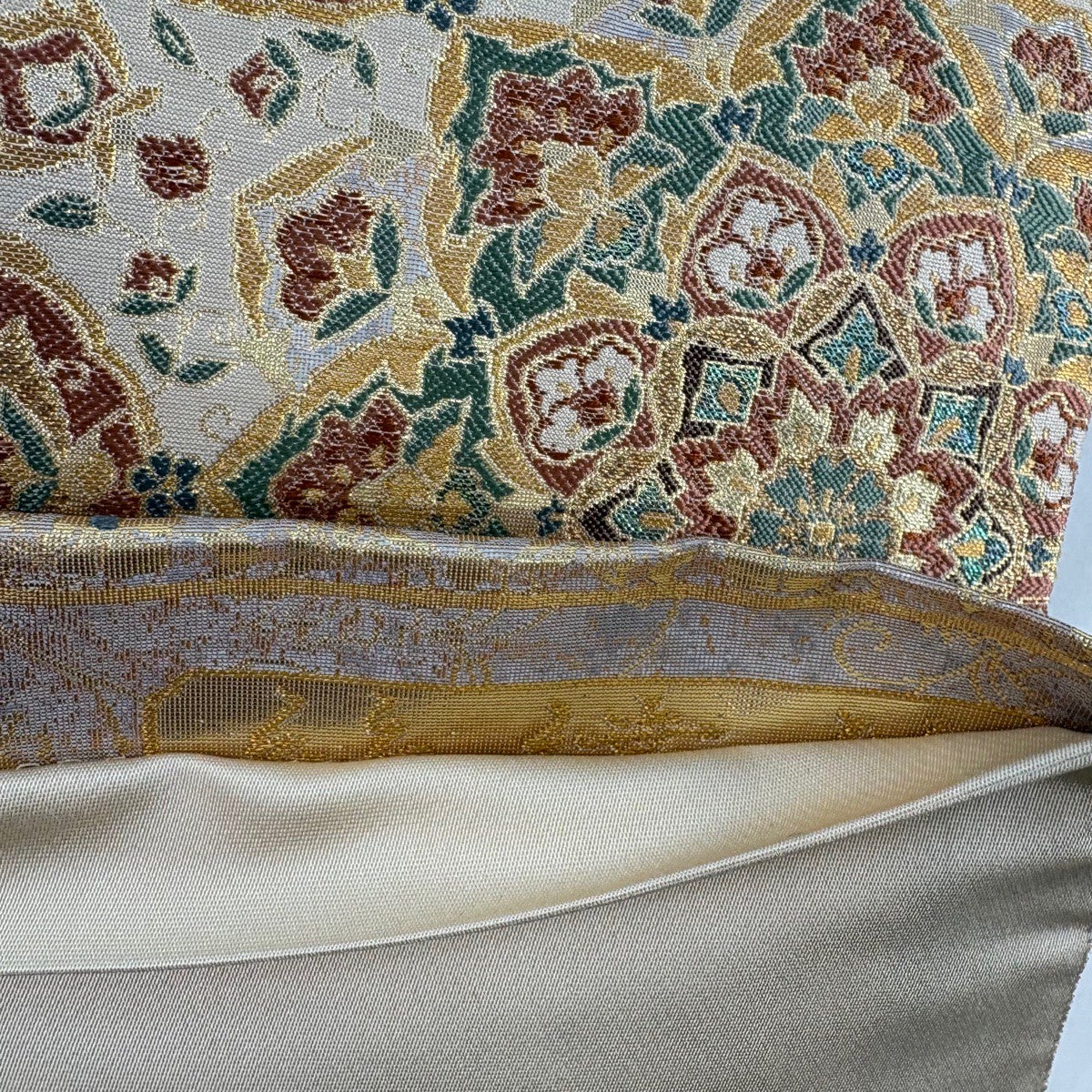 【美品】 袋帯 秀品 蜀江華文 ヱ霞 金糸 箔 金色 六通 正絹