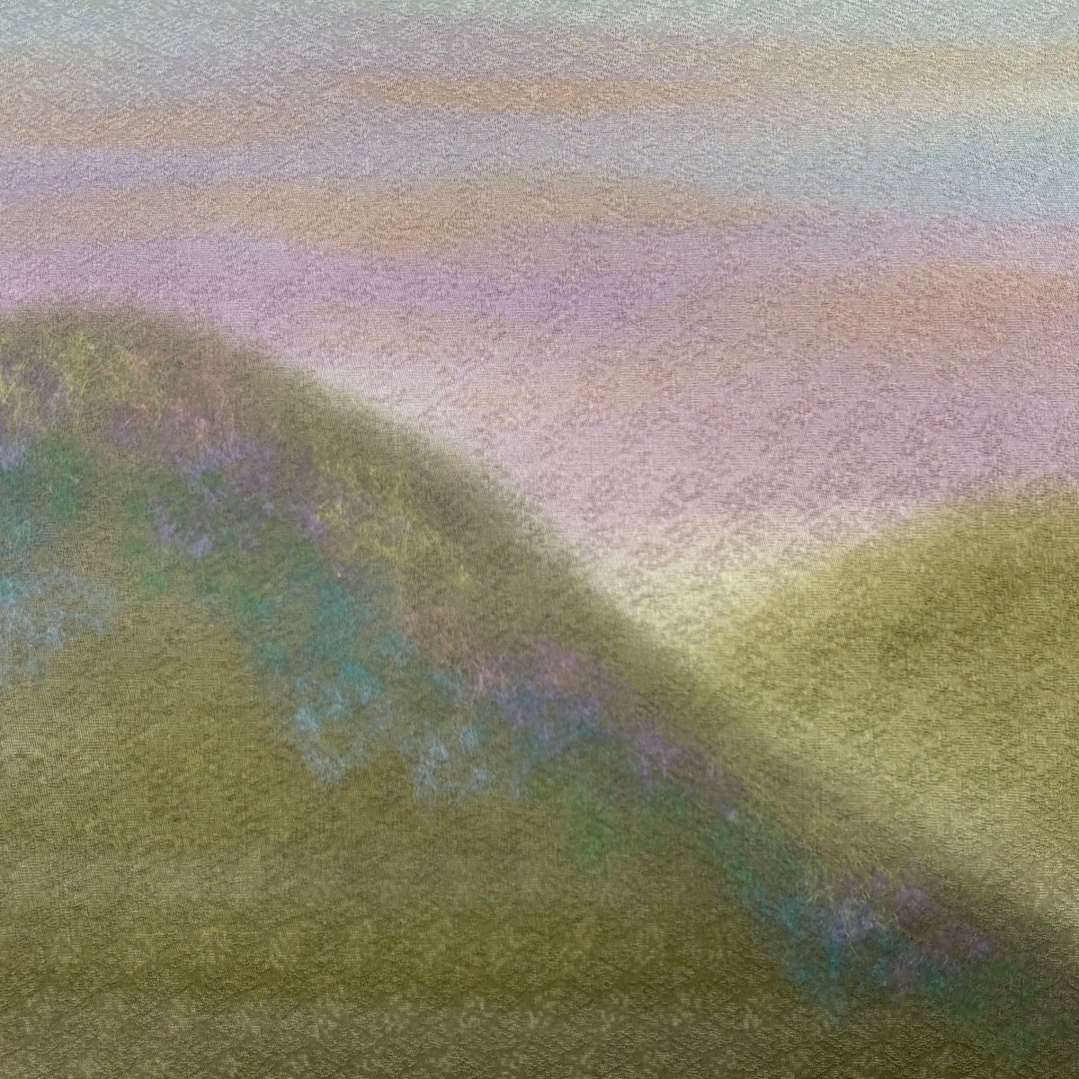 【美品】 袋帯 名品 落款あり 能州紬地 幾何学模様 灰緑 お太鼓柄 正絹