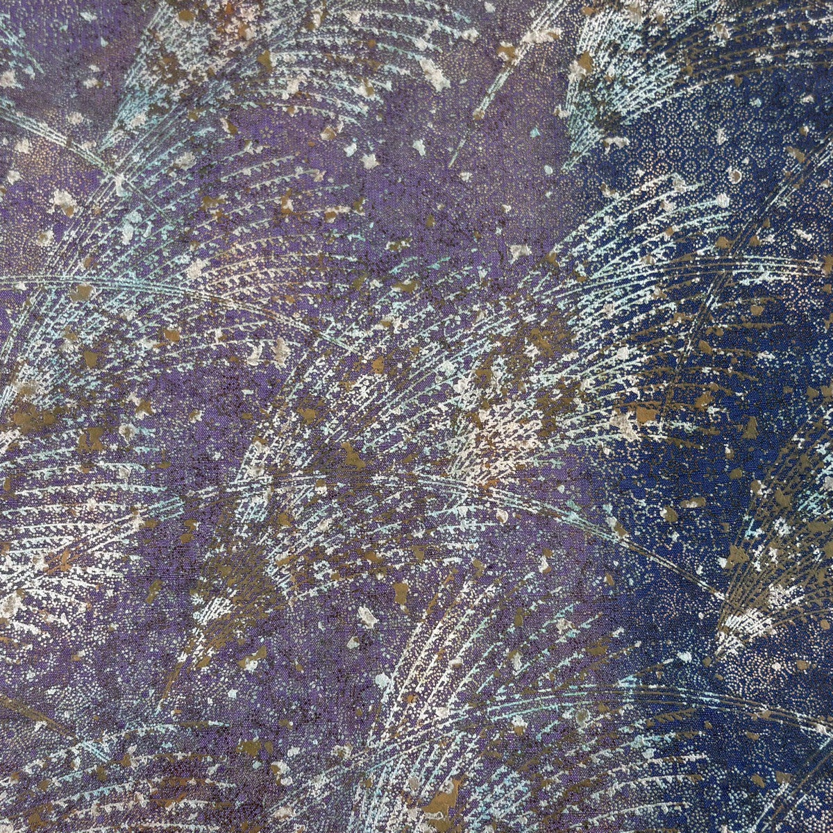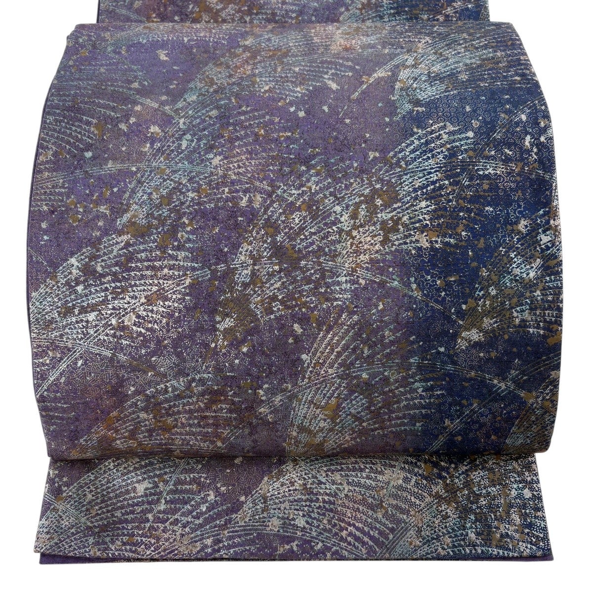 【美品】 袋帯 秀品 花唐草 幾何学 金銀彩 紫 全通 正絹