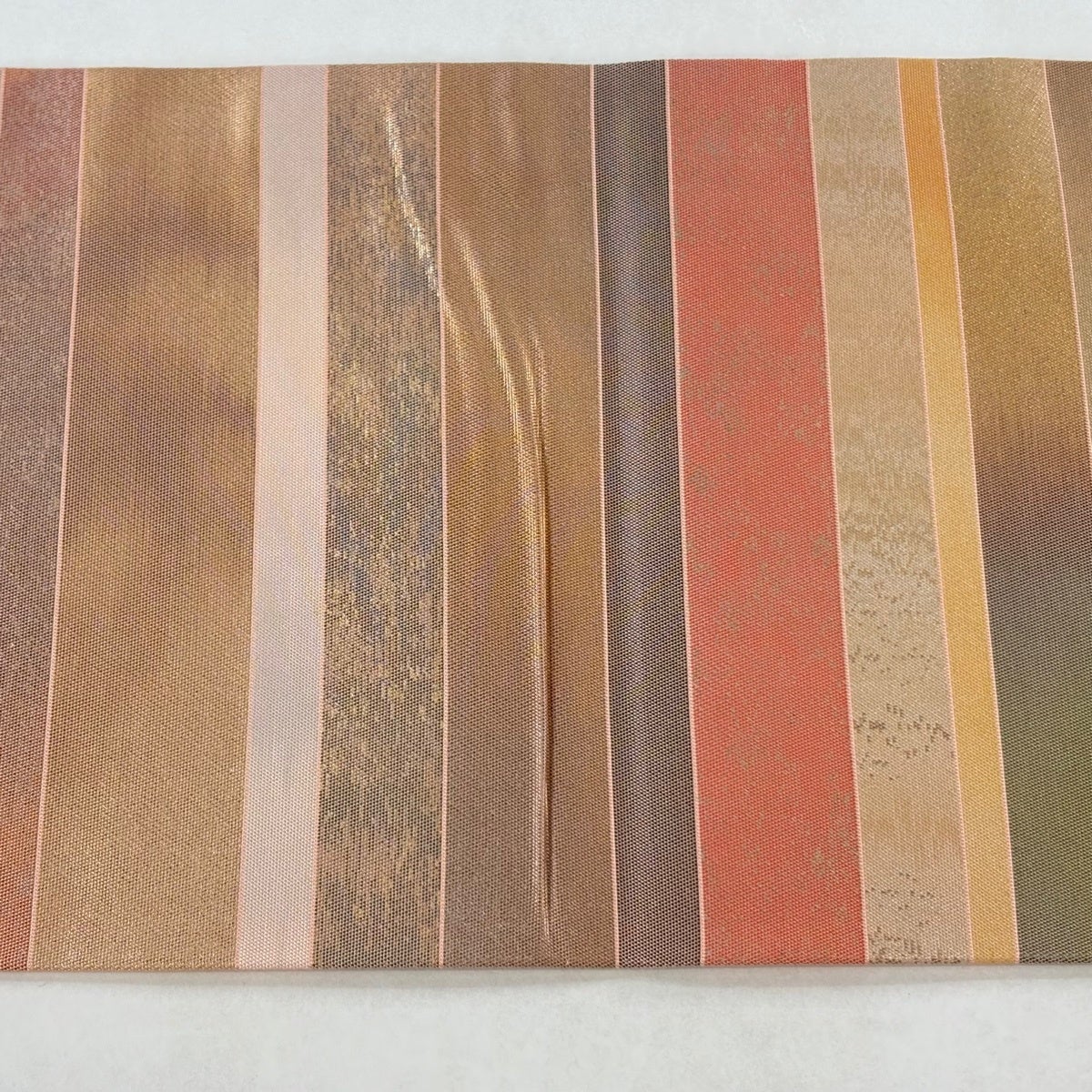 袋帯 逸品 ますいわ屋 ラクダ 縞 銀糸 ベージュ 全通 正絹