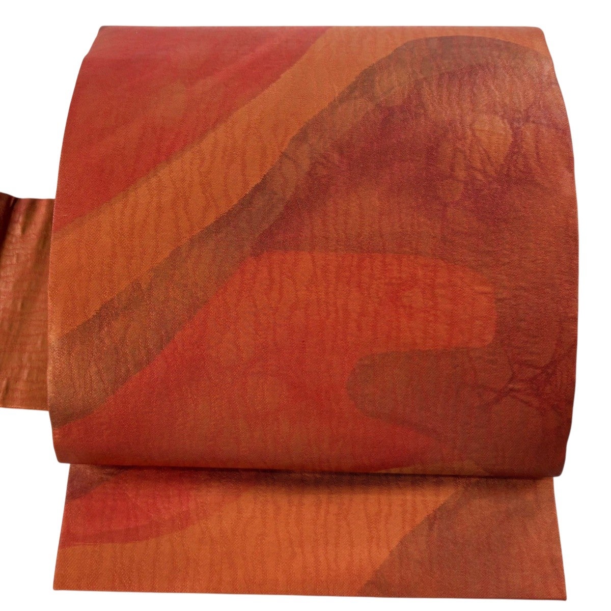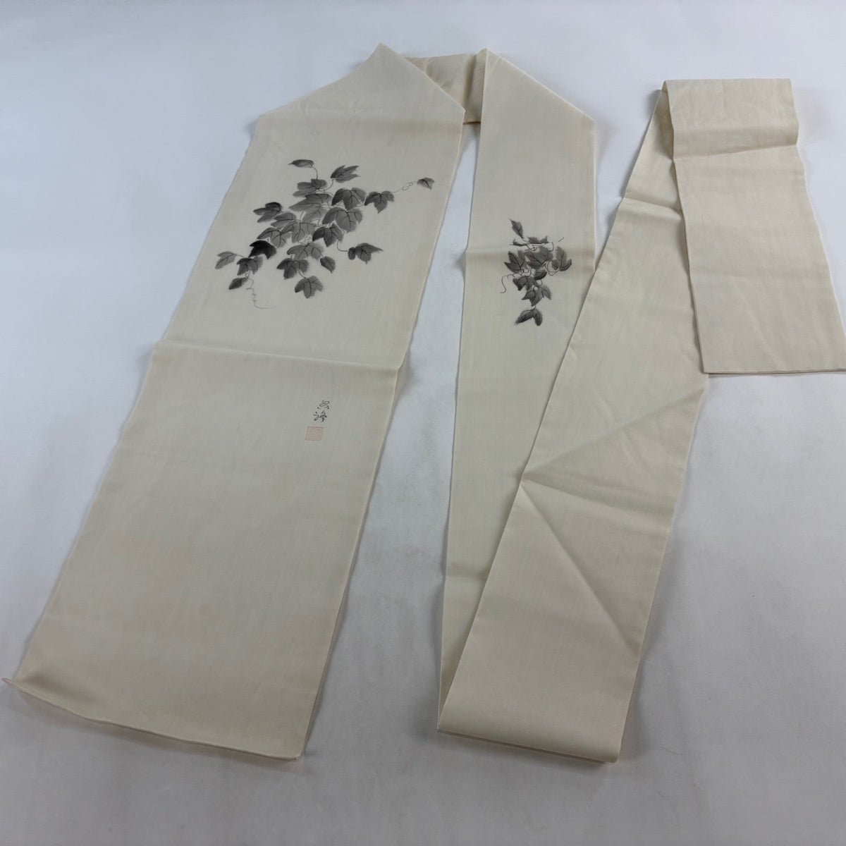 【美品】 開き名古屋帯 逸品 落款あり ますいわ屋 海風景 蟹 クリーム 正絹