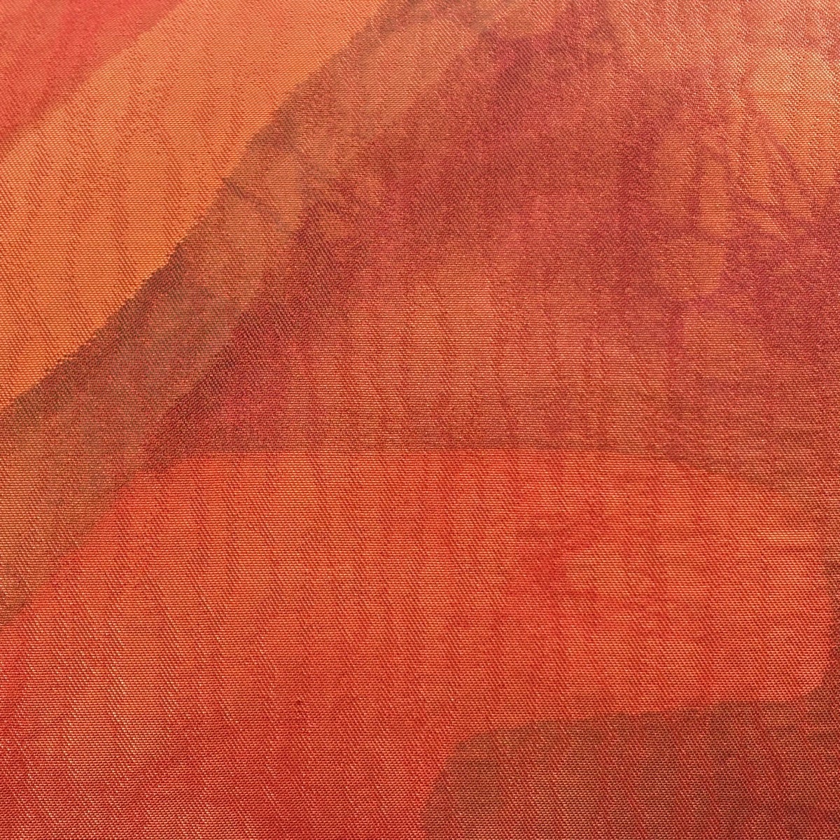 【美品】 名古屋帯 秀品 夏帯 縦絽 幾何学模様 ぼかし 青灰色 正絹