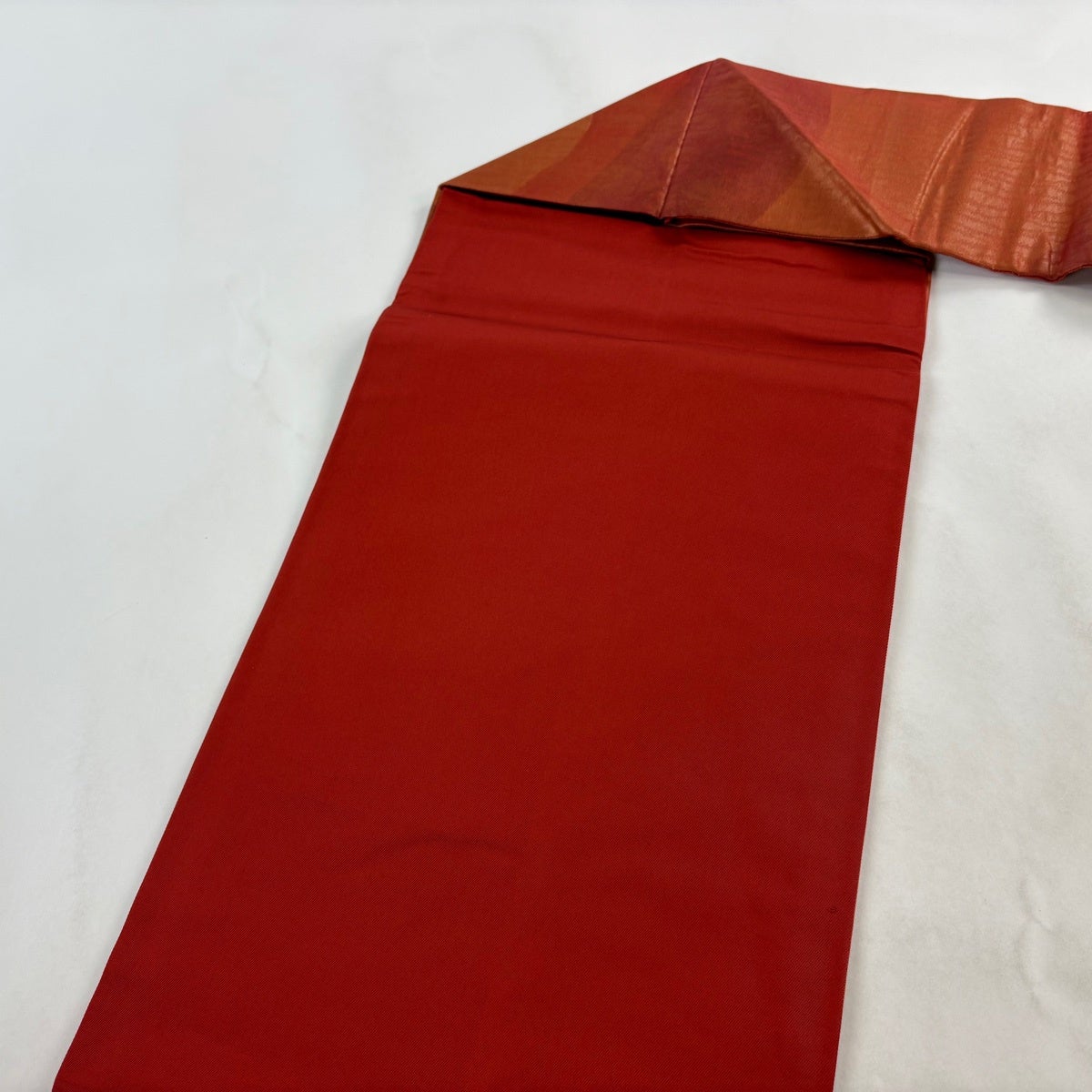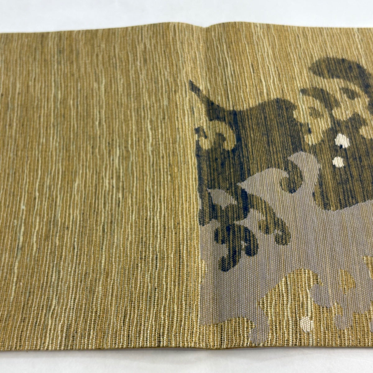 【美品】 開き名古屋帯 逸品 龍村美術織物 証紙あり 比翼仕立て 縞 幾何学 山吹茶色 正絹